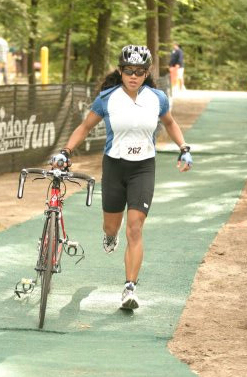 Comments: Although my legs decided to cooperate with me when I wanted to run from the time the water was waist high to my bike, I've come to believe that I need to actually practice T1s. This over 4 minute stuff has got to stop. I haven't gotten the courage to shorten my wetsuit legs by cutting them, and am still getting my feet caught in them. My shirt: first time this same top I've been wearing got tangled up while trying to get it on. I did take the time to towel off all the stuff off my feet that I caught running in the sand, dirt and grass because I don't like anything in my socks other than my feet! I ride in my running shoes and clips. What would you do differently?: Still haven't quite figured what's best for me after 5 events. ![]() Bike