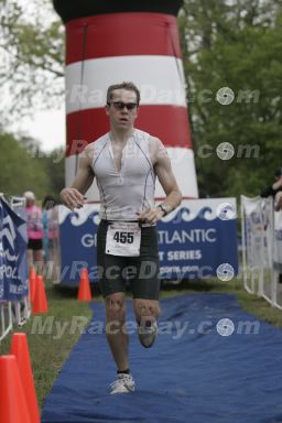 Comments: Started out in low zone 3 which was probably sort of a bad idea. I walked through every aid station (about every mile) in order to get water and Gatorade in me. Tried to alternate which I drank each aid station. My back was still a little sore from the bike and it felt like I was pinching a nerve or something by being upright. Both the soles of my feet went numb about a mile in and lasted like this for at least 4-5 miles. Very strange, as that's never really happened before. At about the 10 mile mark when I was walking, I started up again and both my achilles were on fire. They had been a little sore up to that point, but for some reason they really started acting up then and lasted for the rest of the run. Probably a big part of the slow 2nd half splits and low HR's. Overall though, I was a little sore but it could have been a lot worse. My IT band was fine, my knees were fine, and my plantar fascia were fine. My right armpit started chafing and I didn't realize till later but my crotch was pretty chafed. Luckily it didn't affect me on the course. Ended up stopping twice for pee breaks. Nutrition: Gel ABOUT every 45 min, gatorade 1 Accel Gel, 2 Hammer Gels, 24 oz. Gatorade estimate - total about 450 calories What would you do differently?: Next time start off slower and finish stronger. Also use Body Glide and better sunscreen. ![]() Post race