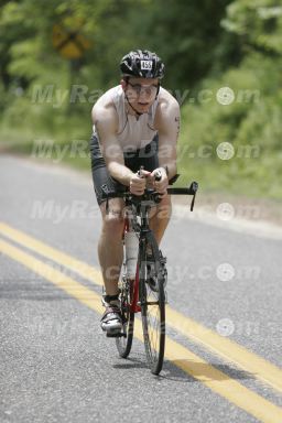 Comments: Had a really good ride. Averaged 1.6 mph faster than 30K du only a month ago. This was due to the lack of wind and hills. At times I was really hammering it up to 25 mph sustained. Had to stop at about 2 hours in to pee. After that I felt ready to take on the world and really got into it passing all the people who passed me at the pit stop relatively quickly. Twice I had my bottle of ultra endurance formula pop out. Once on the railroad track and once over a pothole. I went back each time because I could not afford to lose those calories. Once while doing this, this girl with a full faced, BMX style helmet gave me and "admirable." Kind of weird, but I passed her 3 or 4 times and each time she said something odd to me. I did lose half a power bar though thanks to another bump. Did have some digestive issues with gels and whatnot but I don't think it really affected me and by the time I got off the bike I was fine. The bottle swap thing was a good idea. Had I known they had gatorade available too, I probably could have gone without the behind the seat waterbottles. Back started to get a little sore toward the end, but I managed through it. NutritionTotal Nutrition on bike: after 30 min - 1/2 powerbar, gel every 45, gatorade bottle for first loop, ultra endurance for second. Total Nutrition on bike: 2 Gu's, 1 Accel gel, 1/2 PowerBar, 24 oz Gatorade, 24 oz Ultra Endurance Formula - about 900 calories total What would you do differently?: Probably carry less water with the amount of aid stations they had (every 14 miles). That said though, I'm glad I had the comfort of knowing I had my own nutrition. Don't carry PowerBars! They're sticky and hard to open. ![]() Transition 2