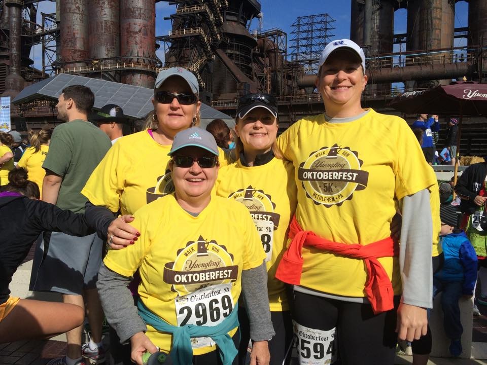 Comments: They started the race by time corrals, leaving a few minutes between each group. It was about 7-8 minutes until our little group started. I tried to put us in the 11+ min/mile group but didn't see the little flags they had to designate the corrals, so we were actually in the 9-11 min/mile group. Once I realized my error, well, actually my sister overheard someone else comment about it, we made plans to move off to the right to allow faster runners past. Of course we were worried over nothing as people slower than us and walkers hadn't grouped themselves properly, either. When the signal to go was given, all 4 of us started at a light jog, Whale included. I was surprised, since she doesn't run and wasn't planning on running. After a few hundred yards, Lizard and I pulled away from Cuda and Whale. Not too much later, I saw a broken steak knife blade in the road which was a bit creepy. Lizard had requested I stay with her, so I told her to dictate the pace and the run/walk intervals. She surprised me by running the entire first 1.25 miles, including going over the bridge (like a hill) and back down before she took a walk break. There were German dancers and musicians throughout the course which was great fun! We kept alternating running and walking but mainly running with me chattering away, offering encouragement and tips and general distraction. She opted not to stop for water at the only water stop, so I didn't take any, either. Once we crossed the river for the second time, she wanted to walk some more. I let her walk as long as she wished, then we decided together that it would be the final walk break and she would run to the finish. As we neared the finish, I could tell her energy was waning and she didn't want to keep running, so I kept encouraging her. She is one tough little cookie and pushed on and ran across the line. She was exuberant about finishing! We quickly looked for water, didn't readily see any (another little bit of foreshadowing), so we headed back to the finish area to cheer on Cuda and Whale. What would you do differently?: Nothing. I was running at my friend's pace to be with her during her first race. This wasn't about me or my time.  Post race Warm down: When Cuda finished with Whale only 12 seconds behind her, we cheered and hugged and celebrated. I think Whale was wishing for an oxygen tank and a sofa! I was so incredibly proud of Whale and Lizard for taking on this challenge which is way out of their comfort zone and normal thing to do. We searched for the 'medals' (decorated gingerbread cookies), snacks and water and eventually found them behind a non-moving wall of people. It was very disorganized and racers were handing the items out to the crowd, reaching over other people. I'm not really sure why it was a mess like this, maybe people were standing around rather than moving through the lines/area. We got our food and water, then needed to figure out where the 'medals' were. Again, we eventually found them behind a crowd of not really moving people. Frustrating. Next we retrieved our bags from bag check, which went significantly smoother than the drop-off. It felt good to get our warm jackets on, it was windy and chilly. We stood in line for close to an hour for our 'free' beers, then headed in to enjoy the offerings of Oktoberfest! A decent assortment of German foods, a great Polka band who performed a fun mix of traditional Polka songs as well as contemporary rock songs that were 'Polka-ized', a traditional German dance troupe that did various dances including the Schuhplattler. I got a Bratwurst sandwich with kraut and put imported German ketchup on one end and hot mustard on the other to try them both as well as some Sauerkraut pierogies, yum!! Later we shared apple dumpilngs with ice cream. Goes great with Oktoberfest beer, LOL! We did the Chicken Dance, the final song the band played before going on break before we left, great fun! On the way out we spotted the Alp horn players. In between songs, I asked one a few questions and he gave me the history and info on the instrument and, wait for it, he let me play it!!! SQUEAL!! I played trombone in HS, so I was familiar with how to make different tones. Lizard got to play, too, and they had us do a little competition (which really drew a crowd), which I won, which was awesome until I realized that it meant I had to go up against one of the real guys next! Of course he won, hands down. I was on cloud 9 and didn't stop yammering about it for at least the next half hour! Truly the highlight of my day and weekend! Poor Whale was really hurting after the race and was hurting even more the next day. Our dad said she was walking around like a 90 year old woman! I think she would've been OK if she'd stuck with her original plan to just walk. What limited your ability to perform faster: n/a Event comments: This was the first year for this race. Overall the experience was good, but they have some issues to address to improve for next year, namely better bag check, port-a-potties rather than relying on existing on-site bathrooms (which were nice, of course, but way too crowded), and maybe having more than one place to get beer. Having it in conjunction with Oktoberfest really made it a fun event. The good times we had at Oktoberfest helped lessen some of the bad of the issues listed above. Last updated: 2014-08-18  12:00 AM |