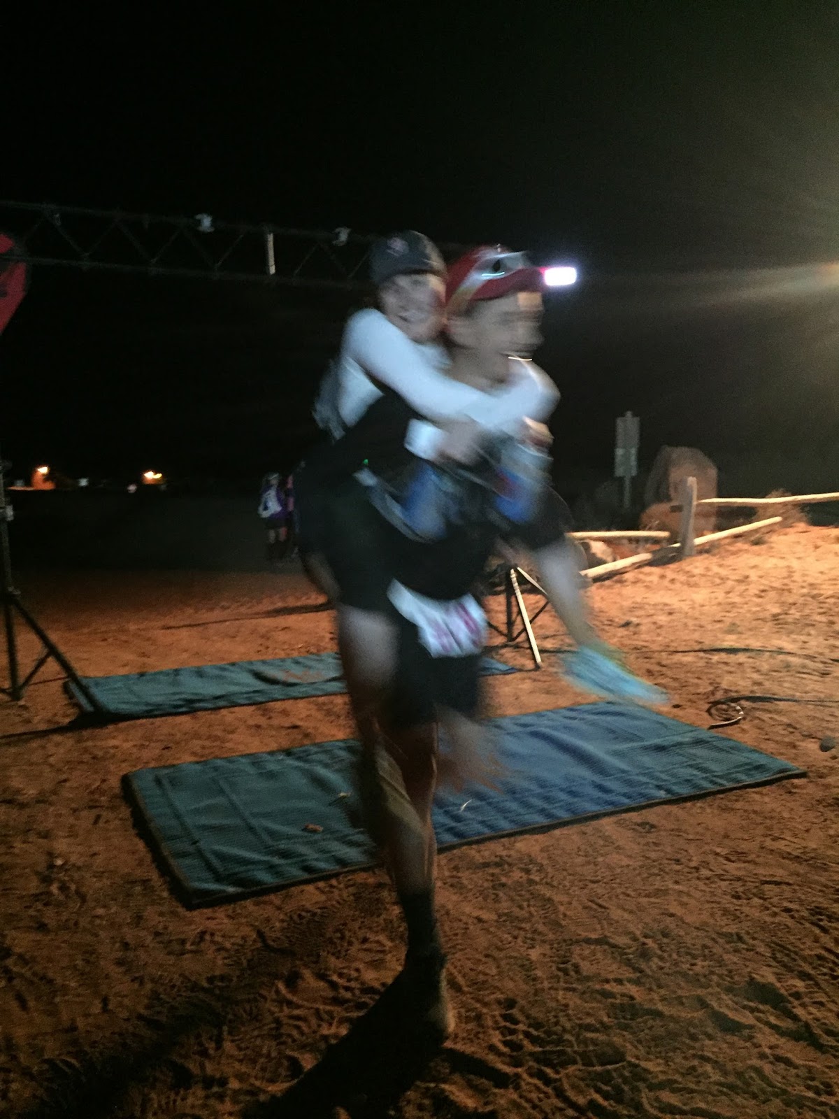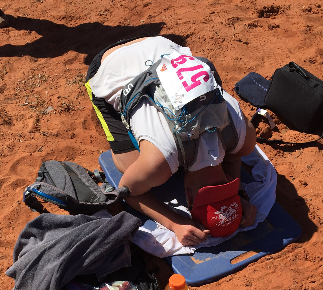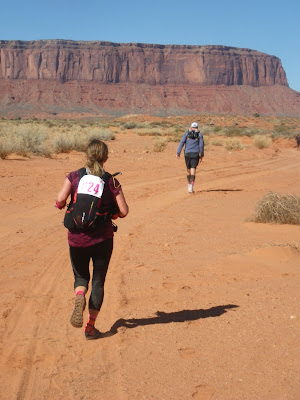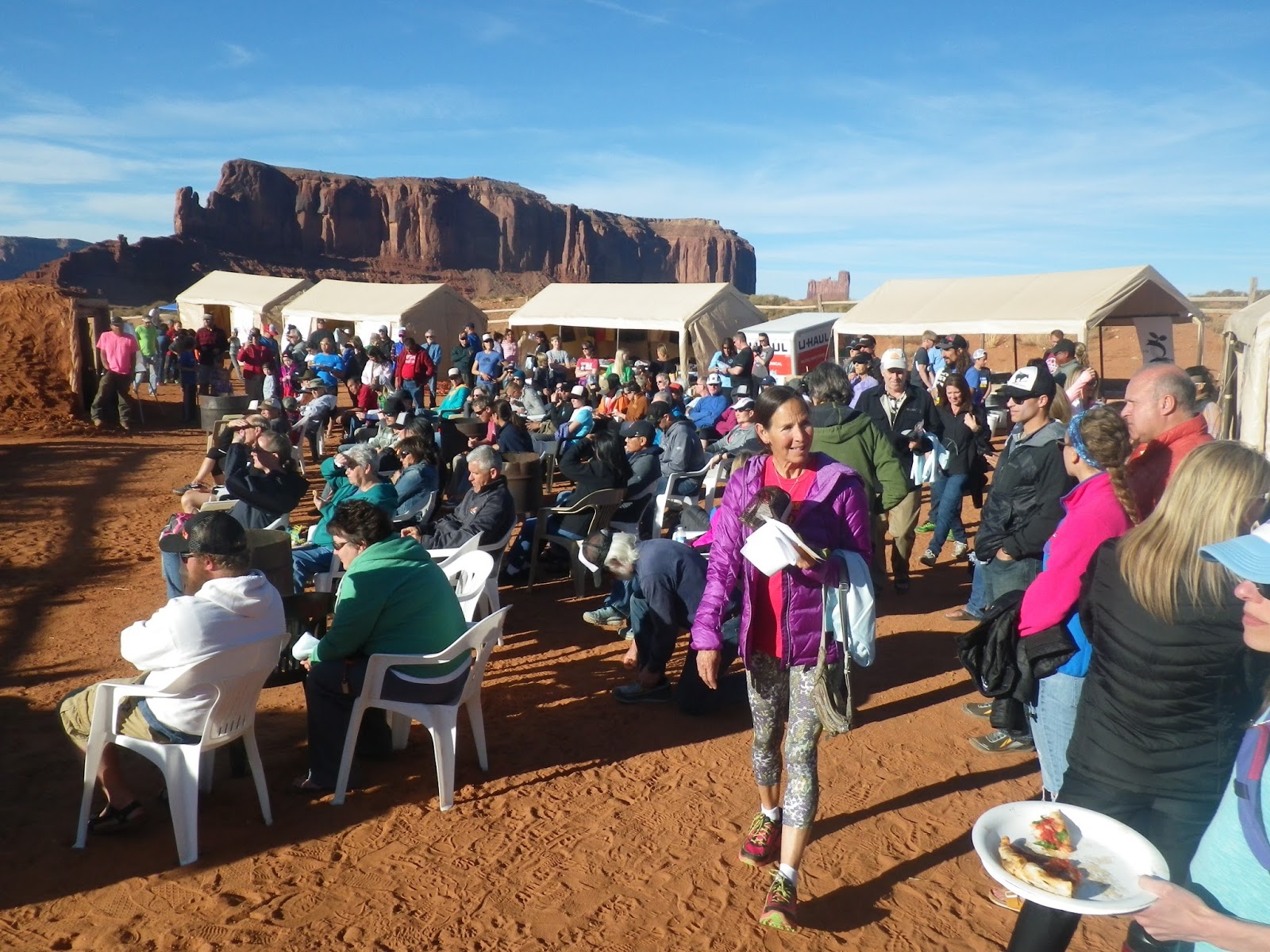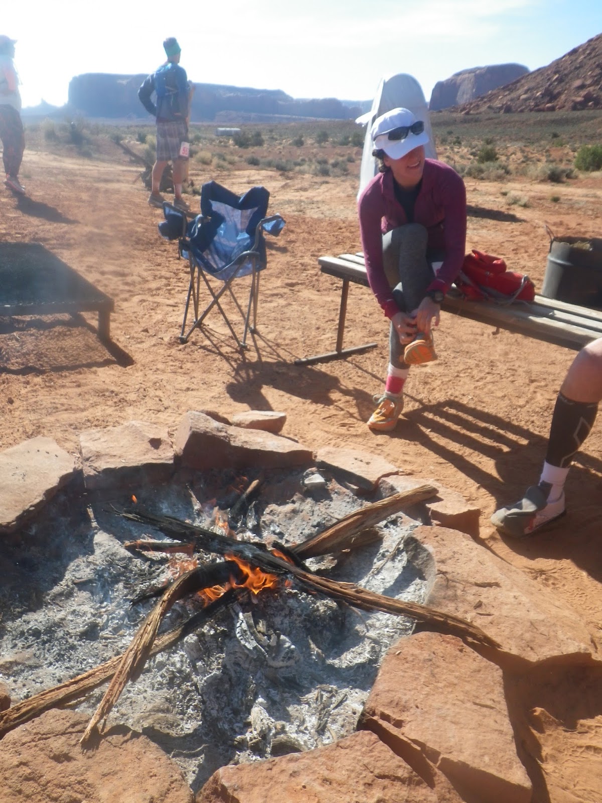Comments: There's a beautiful place that exists on the border of Utah and Arizona, not far from the four corners that you've seen a million times. It's been featured in dozens and dozens of movies, and stands out as THE image of the desert southwest. As a kid, I'd watch old westerns, Forrest Gump, and even Back to the Future 3, see those tell tale buttes that shoot up out of the landscape, and think that all of the southwest looked like that. As it turns out, it's a relatively small place that just happens to have been filmed over and over. Some movies will depict long voyages through the southwest, only to film the exact same spot in the beginning and end, just from a different angle. Hollywood's obsession became my obsession, and when it came time to sign up for my first ultra marathon, I couldn't say no when I stumbled across a race company that specializes in ultras in the desert southwest. Together with some of my family, we make our way from Phoenix up to the Valley, and arrive just as the sun is settling in for the night, throwing light across the landscape that explodes into every color imaginable. The sky is turquoise and pink, the monuments are a deep red, and their growing purple shadows stretch across the desert floor. It's easy to see why this is considered holy land. My dad, who would ground me for a month if just a touch or profanity came out of me as a kid, can't keep his conservative catholic mouth clean. F bombs are dropping left and right as he goes on and on about how he might pass out from how incredible the scenery is. While trying to sneak peaks at it and still keep the car on the road, I've got one hand on the wheel while the other is busy trying to dislodge walnut sized gold nuggets from my nostrils, courtesy of the dry desert air. We park, run out of the car like kids and gaze out over the landscape, while I imagine what it will be like to run 50 miles through it. The good people at Ultra Adventures have put together not just a race, but an experience. The day before the race, we're invited to a ceremony that involves traditional Navajo culture. In dirt dwellings called hogans, heated by small wood burning stoves, there is a jewelry making demonstration. Navajo tacos and fry bread are served, and young ladies invite the athletes to join them in a traditional dance. We're reminded that being on this land is a privilege. Their agreement to allow the race lets us see places that the general public is not allowed to go to. This alone makes the race even more special for me. At sunset, we're given small handfuls or corn and face west. One of the Navajo leads us as we throw the corn into the wind, and we settle back to our cabin to rest up for what lies ahead. I wake up before dawn and start preparing my running feast. Inside my Ultimate Direction running vest I've got baked potato chunks coated in salt, Nuun Tablets, dark chocolate bars, clif bars, gels, blocks, vaseline, ibuprofin, headlamps, and of course, toilet paper! We quietly line up before dawn, this time facing east and throw more corn into the wind. 3...2...1.. and we're off! We head north and immediately cross the border from Arizona into Utah. Not that there's any indication of that. Out here it's just desert. We pass Sentinal Mesa and the sun starts peeking out from behind the horizon. Runners have stopped, with their cameras out, taking pictures of the sunrise, myself included. It's a short but welcome break from climbing up the sandy trails. Imagine running on the thickest, sandiest of sand on the beach, where your feet slide out from underneath you. That's what it was like for most of the race, and it can zap a person's energy like a short on a car battery. After a few miles of climbing, we hit a steep drop off, again on the thick sand. We all hold our arms out for balance and take flying leaps, sinking in every time we land. Someone shouts that it feels like skiing. Someone else shouts that it feels like we're at one of those trampoline parks. All the shouting, woops and hollers echo off the massive cliff in front of us. At the bottom, people are sitting on rocks, taking a moment to dump the red sand out of their shoes. As we round the corner, even more pictures are being taken as we're struck by the bright morning sun. People are stopped, looking out at the landscape and saying to each other "I can't believe it. This is just too much...." There are several Native Americans competing in the race, and I pass by one who has stopped and is giving a traditional morning prayer to the sun. I'm reminded yet again what an incredibly special experience this is. Aid station one is a table of heavenly treats. I go towards my favorite, cooked potato chunks, with a bowl of salt next to it that we can dip things in. The guy next to me is raving about the avocado slices as he coats them in salt and throws them down his gullet. This is the first of several times that I see a fluffy black dog on the course, just having fun running with different people, miles and miles away from anything else. The groups of people thin out and I go out into a long stretch of flat desert, pretty much alone for many miles. Some of the Navajo men are out on horseback, patrolling the course. Mile 12, 13, 14. My right IT band, which has been quietly keeping it's mouth shut for years, decides this is the opportune moment to pipe up and say "Woah hey! I didn't sign up for this!" and a soreness creeps through my right leg, getting worse with every mile. I need to take it easy, but when I see the sign on the next aid station that says "Mile 16", I start worrying about how my leg feels with that many miles still left to go. Even with the sun up, it's still chilly, so some of us gather around their camp fire while we tend to our injuries and chow down on things that are normally considered junk food. I always thought it was funny at long endurance events like this, when you have these super healthy individuals eating chips, candy, bacon, M&Ms, 
