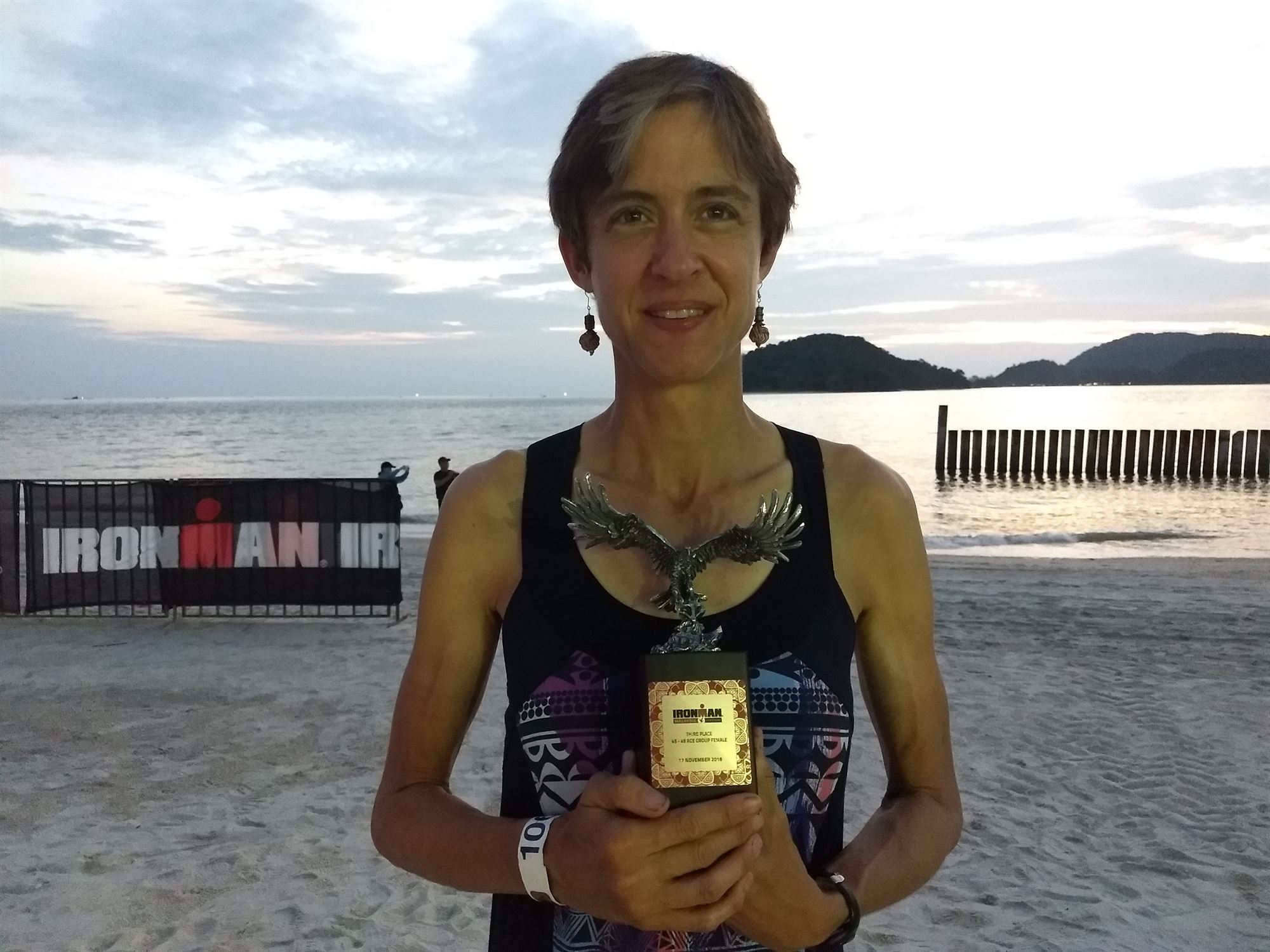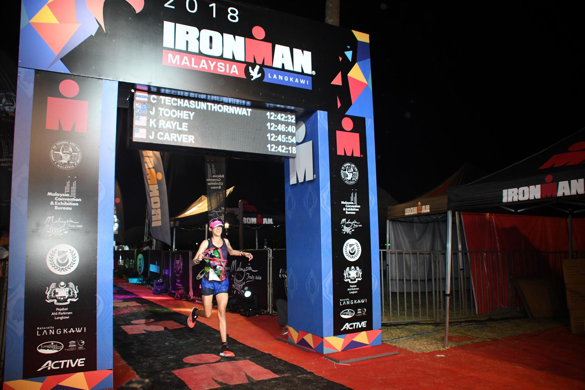 Comments: Arrrrgh! The bike was a non-stop shyte show. It was like a crazy movie that never seemed to end. Would have been great fun if it was a bike tour but this was a race. Fortunately my main goal today was to finish. I was not putting a lot of pressure on myself to AG podium or KQ, or I might have lost my marbles on this part! Act 1: About a mile into the race, we started up the first major hill (on Datai road, up into the jungle. I shifted into my small ring...only to realize that none of the gears worked except the "granny" gear (the easiest one). I had checked the gears before bike check in Friday and they were fine. Basically over the course of the race I had access to 3-4 gears total. Two or three on the big ring and one on the small. Shifting on the big ring was clunky and difficult; nothing happened on the small. Clearly derailleur or cables were screwed up but no idea what to do; might have stopped to ask a mechanic but they were always occupied and anyway in IM Asia rules cannot actually touch your bike, only give you supplies/ suggestions. (Turned out to be a loose cable, probably from the trip over.) Act 2: About five miles into the bike (in the jungle) the black cloud I'd seen approaching on the swim descended and all hell broke loose. Torrential rains, high winds, debris falling all over the road from the trees, screaming monkeys running across the road in panic for about 15-20 minutes. A large limb was down in the road on a downhill section; fortunately no athletes were hit, but we had to weave around it. Apparently the IM athletes were better off (at least those on the bike course) as there weren't many of us on the road yet (many of those who were swimming or in T1 stopped until the worst of the storm passed) and we were pretty spread out. Tons of crashes with the 70.3 athletes (more of them and further along); several people taken to hospital. The main effect for me is that I didn't see a patch of really rough road and all my water bottles except my front frame bottle ejected less than ten miles into the race. Act 3: Everything ejected, everywhere. My original bottles with my favored sugar-free electrolyte drink, extra nutrition from my tri suit, some of my Special Needs stuff in the first miles after Special Needs. For many of the rough sections, I had to reach back to hold down the bottles because I didn't want to run out of fluids between aid stations. I had some of my nutrition in my bra; saw guys with water bottles in their tri tops. Act 4: The Garmin. I knew I wouldn't have power data as I couldn't bring the battery on the plane and had no time to replace it in Malaysia. But the cadence sensor also failed (maybe knocked loose?) and in all the jungle sections plus the coastal areas, the Garmin continually went between "on" and "pause" without my touching it, beeping every time. It paused so much that even the time and distance data became useless, and the beeping was driving me crazy, so I shut it off at about 60 km and rode by feel. Act 5: Cramps. The quad cramps (in a weird area right next to my knees) that I've been struggling with on long rides for the past few months came back at 60 km and never really went away. I've tried and failed to figure out what triggers these. They developed suddenly on a long ride with no clear trigger; sometimes I get them sometimes I don't. I got them. Pushing too hard a gear makes them worse. So I had to push an easier gear than I wanted to, even on the flats. And on the hills it was overgear or the granny. Those were my options. Sometimes the cramping affects my run, sometimes it doesn't, so I opted to play it safe. I had some topical anti-inflammatory (like Icy Hot) in my Special Needs bag and was able to put it on at about 100 km; stashed the tube in my tri suit but it fell out a few minutes later. Asked medical at two stations and no one had anything similar. (They did have a similar spray at T2 and a few run stations, though, which really helped.) On the plus side, the heat didn't really bother me. It was in the 80's and 90% plus humidity, but there were only a few times when I felt uncomfortably hot on the bike. And maybe because of the slow pace, I never really felt that tired or "over it" on the bike leg. I finished feeling comparatively "fresh", if one can use that term in a full IM..... What would you do differently?: Ummm....have a derailleur and shifters that really worked. No idea what happened. I checked the shifting for all the gears before checking in the bike on Friday and it was fine. Once into transition, had a mechanic do a quick once-over of my assembly job and tighten a few bolts on my aerobars. He didn't do anything with the derailleur but did spin through the gears. Not sure if something got screwed up then or maybe overnight--there was some heavy rain and high winds; some nearby athletes said their bikes had been moved. Maybe some fell over and something got knocked out of place? Anyway, when I started up the first hill, right away I noticed that my gears weren't right. On every hill I had to decided if I wanted to stay in the big ring, or go to the granny gear. Pretty much always under or over-gearing on all but the steepest hills. Ugh. It would have been nice to have power . I think if I had access to power data (and proper gears) I would have pushed myself to hit a reasonable power range and might have ridden a bit faster and paced more consistently. Or maybe it was good just to ride by effort, given the tropical conditions and my total inexperience at the distance. I just don't know. Maybe use different water bottles or a different system for keeping them in. I lost both back bottles in the first ten miles, partly due to extremely rough conditions and not being able to see the road well during the storm. So I had to keep getting fluids from the aid stations. It was too much sweet stuff (the electrolyte drink) to tolerate the whole time and I started burping as the isotonic drink on course is carbon