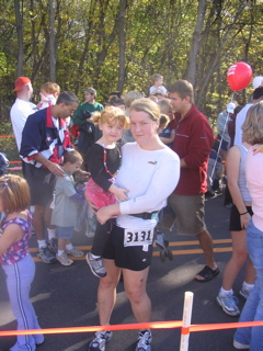 Warm down: did a 1k kids' run with my 3-year old, ella. she had a great time, but at about 1/2k she wanted me to carry her. so, we walked for a bit, than ran some more. she did great. all the kids got a ribbon and a free t-shirt! stretched a bit, had a bagel, then headed home. What limited your ability to perform faster: i'm still learning how to pace myself. Event comments: i don't have a vast race experience, but this was a great race for a family. there were two different kids races, free arts & crafts for the kids, kid tattoos, face painting, a climbing wall, a stage with music and a yoga instructor who geared her yoga towards the kids. ella had a GREAT time. plus, it is a beautiful park to race in. this one is on the calendar for next year for sure! there was no chip for this race. race results will be available online in a day or two. for now, i'm just going off my own watch. will post pictures soon! Last updated: 2004-08-10 12:00 AM