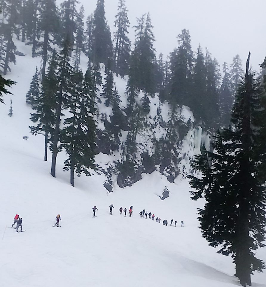 After the safety meeting I put my skins on my board and then my board on my feet and went to the start line!