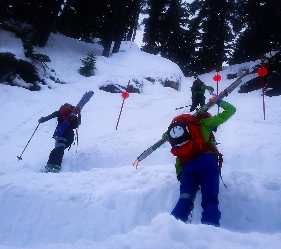 I got to the mountain and picked up my bib then went and got all my gear together. You think triathlon is a little gear-cumbersome, skimo is no different! The good thing about skimo is that most of the gear you don't have to use (hopefully) as it is mainly emergency gear.