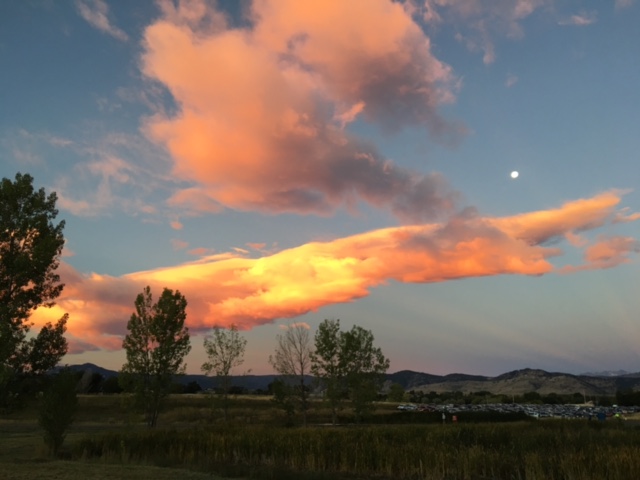 Yeah...prior to traveling to CO, the race day forecast looked perfect: light winds and highs in the mid-seventies. Til race day arrived, it became a high of 88 and VERY windy with gusts over 35 mph. There was a wind burst of over 45 mph which caused bikes, racks and fences to blow down in transition, it looked like a disaster zone. Helmets and bottles blew like tumbleweeds. The inflatable slip n slide at the finish took flight and crumbled, thankfully no one was in it. Also thankfully I was already finished and standing watching for a friend to come through on the run when the wind burst hit. I heard a few tales of people being blown off the road while riding. My rental bike only suffered ripped bar tape and a few minor scuffs. But I digress, and I jumped ahead of the tale. Let's begin, shall we?