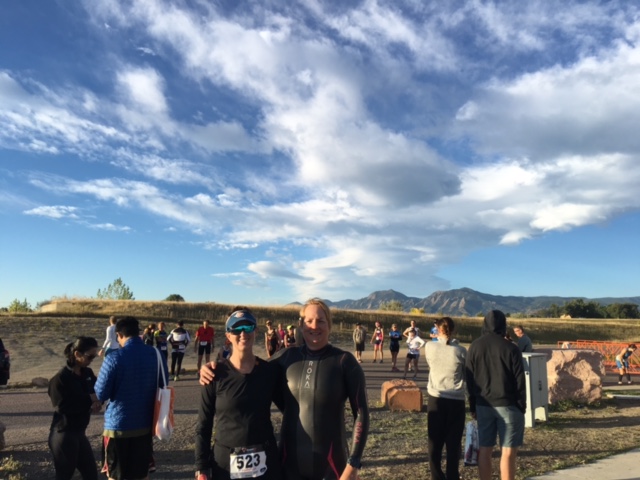 Warm down: Slip n slide! Water! Hung out with Michelle and TJ as we watched for Mary to come through on lap 1 of her run. Just before we saw her is when the crazy wind burst blew through, it's truly amazing no one got hurt by crashing bikes/racks or the airborne Slip n Slide. We cheered her through, then I got changed and got some fish tacos, beans and rice. Yum!! We chilled until she finished her race which was such a wonderful, wonderful experience, seeing her finish such a feat! Our faithful Sherpas (and us!) definitely deserved the pizza and beer we had at Kokopelli's afterward! Big, big thanks to TJ and Michelle for all their support throughout the day, and patience, too! It was so fun getting to spend time with TJ and Mary who I met through the manatee group. And really, it's Mary's 'fault' I even did the race and went to CO! I also got very sunburned despite putting 50 SPF sunblock on before I put my wetsuit on. I think maybe the wetsuit rubbed it off, especially on my shoulders. I burn easily anyway. In hindsight, maybe slapping more sunblock on in T1 would've been worth it! What limited your ability to perform faster: Being unsure of how the climate would affect me and also not being acclimated to the altitude. Plus the usual, carrying around some extra weight. One of these days that won't be listed as a reason! Event comments: Nice race, nice swag, nice course. The weather can't be helped. I'd definitely do this race again! Last updated: 2016-02-29 12:00 AM