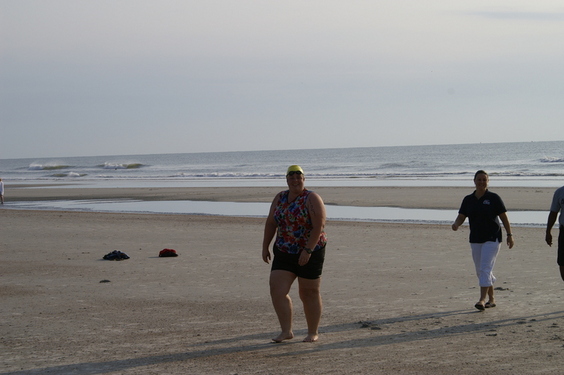Comments: The surf wasn't bad at all, maybe 2 feet. The current was very strong and from watching other waves you needed to start way to the right, which I did. I lost a lot of time getting over the surf break. This is always a problem for me but I did it. I have hardly swam at all over the past few months, so I knew this wasn't going to be a pretty swim and boy was I right! I had trouble sighting at first. I got on track and came real close to the first bouy. By that time I was starting to find my stroke but I was so far behind by then, I knew I would be the last out of the water. I was bummed but I was determined to keep a good attitude. Got out of the water and went the long way up the beach. There really is nothing much worse than running in deep soft sand... What would you do differently?: Train, swim, lose weight! ![]() Transition 1