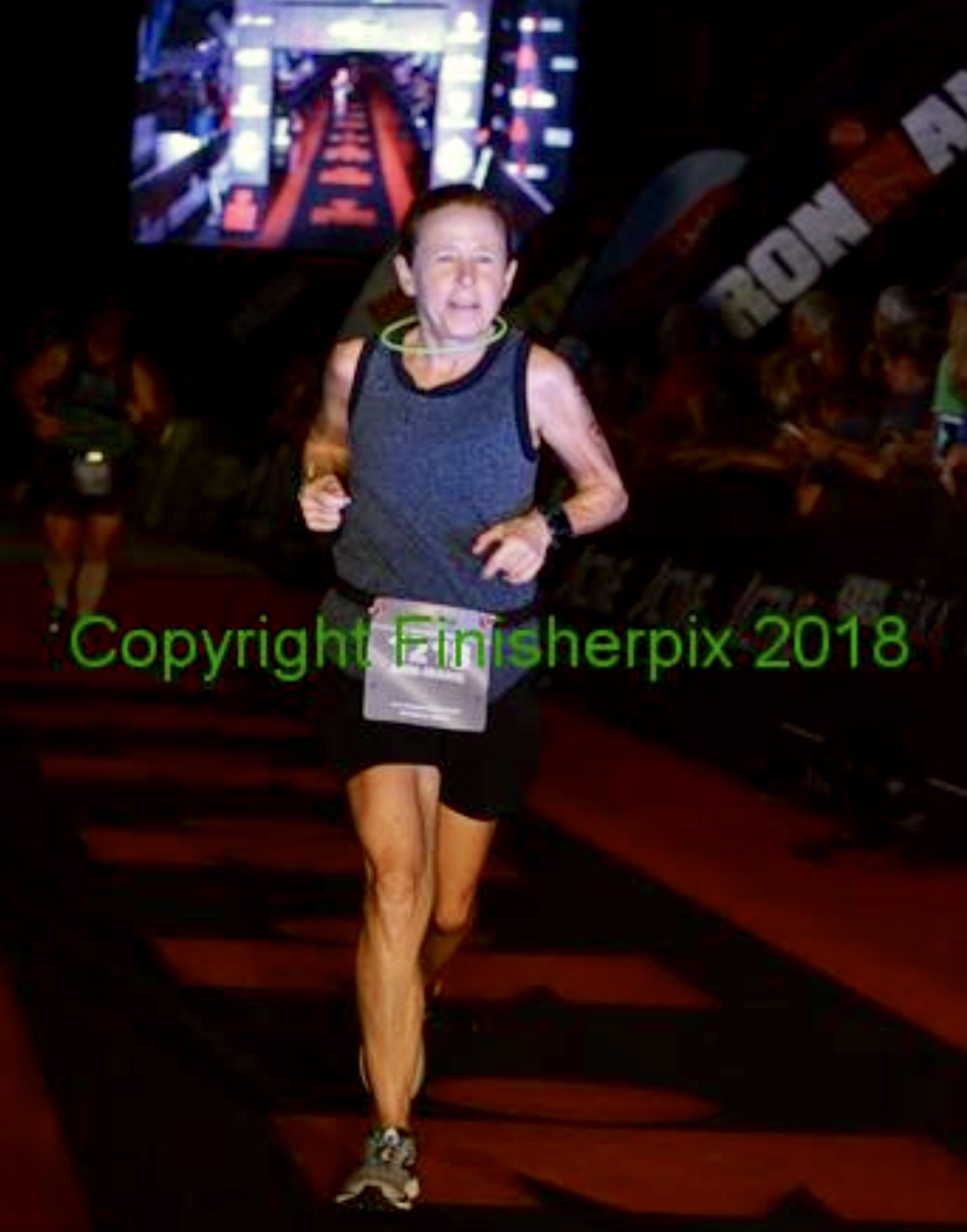 Comments: With the first few steps I knew i was not going to be able to have the run I wanted, my left quad, hamstring, and piriformis were not happy. The hamstring and piriformis were giving me trouble for a couple of months, but i thought they were under control by race day. I was wrong. I "ran" the first little bit out of transition until i saw the first hill and saw Kathy walking it. When i caught her I walked with her catching up on how she was feeling and discussing the bike.At the top of the hill I forced myself to start running. I was really, really tempted to just keep walking with Kathy, but knew I needed to get going. My get going at this point was a 3:2 interval. So much for the plan to run from aid station to aid station!. Susan, Charline, and Rebecca were at mile 4 cheering. It was nice to see them. Charline ran about 10 seconds with me encouraging me to try to run the leg issues out. I assured her I would and moved on down the road. I stopped at all the aid stations to that point and had coke at each one. I'd never done that in training, but it was the only thing that sounded good to me. I had my own nutrition, but after taking the first bit of it, i just couldn't take anymore. By about mile 6 my leg was feeling better and i had more energy. I think the coke calories helped. It seems i did not have enough on the bike and now was trying to catch up. I still couldn't run aid station to aid station, but i was moving better and my 3:2s were 4:1s or sometimes 3:1s. I still walked all the aid stations taking coke and ice. I don't remember what mile it was, but somewhere around here I decided i needed to start skipping some aid stations though b/c i was afraid i'd get over hydrated, bloated and otherwise sick on the coke and i still couldn't eat anything else. I ran through them when i skipped them which helped keep me on whatever interval i had chosen at that time. Saw the gang at mile 8 and got more positive energy from them. I was on a walk break when i saw them, but when i started to run again I ran around the corner onto the bridge, over the bridge, down to the bottom of Barton. I was really happy with myself for that. Of course, i was not running up Barton! It was on Barton that i got the first cramp in my calf. That concerned me. Every time I ran they cramped. I would stop every so often to stretch them out and was able to keep major cramping at bay, so i was happy. The rest of the run at that side of the river was the same, run walk, keep calves from cramping too much. Now i was back on the other side of the river, past special needs and saw the base salt people around mile 14. I decided to take some hoping that would help keep the cramps away. Bad idea. Almost immediately after using it I got nauseous. I don't know if it was the base salts or something else, but it sucked! I fought it the rest of the run. It ebbed and flowed, but was always there to some degree. Some have said the sick feeling was likely not the base salts, but the coke. Too much sugar; i should have waited until later in the course to take the coke. But, I really don't know what I would have been able to stomach to get the calories i needed. Man, this IM thing is complicated ;) Spent the next miles as before, but with the sick stomach i switched to 3;1.5s for most of the intervals to mile 20. I was happy to be moving and happy to see the miles tick off. At mile 20-21 I again saw Susan and Rebecca -Charline had to leave. Once again I was on a walk, so Susan walked with me and encouraged me to stop my boycotting of the aid stations and try to eat grapes or banana . I went with the grapes. The 4 or 5 i had tasted great. Once again I ran from that point, around the corner, across the bridge, down the other side and begin the long walk up Barton. From that point on I ran more in the neighborhood then i did the first time around. I passed a lot of people in through here, being so close to the finish gave energy to keep moving; though I still walked Barton when I got to it again! After Barton, i ran most of the way to the finish. I think i just had 1 more 1 minute walk. It was a good thing the end was near though as in addition to my calves cramping, my feet were starting too! The road behind the aquarium was empty and dark. I was the only runner there! But i could both hear and see the finish line, so it looked great to me! As i ran down the chute, I slapped a few little kids hands, made sure there were no runners ahead of me whose finish line picture i was going to mess up, then crossed the line! Susan was there cheering which was nice. Got my hat, shirt, and picture taken and then went to find Susan then back to the hotel. I was really, really happy with the location of the hotel - closest one to the race site which was really welcomed at this point. I was actually feeling pretty good immediately post race - though not ready to eat the cake or brownie Susan bought. Or drink any beer we had in the fridge! But, I did want to go back to the finish line to see Kathy finish. So I showered and got dressed and then sat on the bed to wait until the tracker showed her close to the finish. I grabbed a soda, took a sip and immediately jumped up and headed to the bathroom to throw up! Thankfully (or not) I didn't throw up, but from that point forward through the rest of the night i fought being sick to my stomach. Ugh. I could not even drink water. I could not work up the ambition to change, so i curled up in my shorts and shirt and tried to sleep. Of course, i woke up many times, sometimes nauseous, but even more often with massive cramps in my calves! The cramps were crazy. I tried not scream out so not to wake susan in the next bed, but she heard me a few times. Sorry! I woke up for good at 5:30. I was hungry, but scared to try to eat or drink. I gingerly took a sip of the soda still sitting on the bed stand and yay! i did not get sick!! We walked down to City lights where i ordered eggs and pancakes. Now the next p