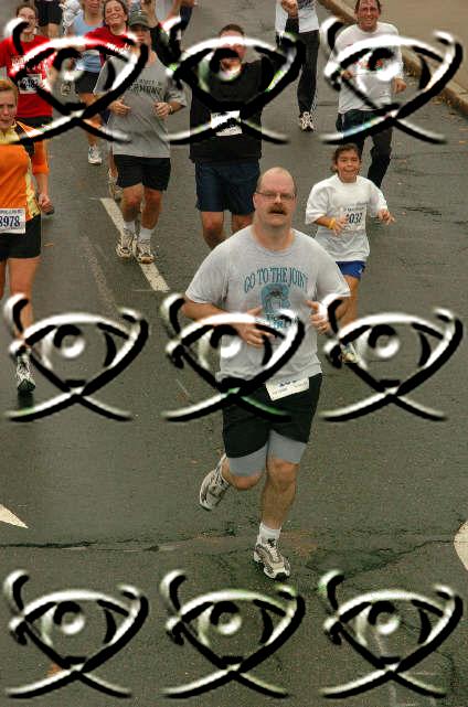 Comments: The run started as a walk and it took ~4:40 to get to the start line. The whole run was one of dodging and weaving around other people that suddenly decide to stop running and start walking. Running the downhill I could only speed up in very short sections, but I didn't really have anything left at the end of the race anyways. I smiled for my picture and it was fun. What would you do differently?: Train for longer before the race to become seeded and move to the front so I would have to dodge so many people.  Post race Warm down: Drank a couple of bottles of water and walk back to my friends house with my daughter who met me at the race. What limited your ability to perform faster: The crowds Event comments: The bad part of this race is that my wife Lori trained the whole time with me and got a virus the day before which gave her veritgo. She was stuck at home with the kids. I really missed having her there with me. I'm looking forward to running this race next year a much improved pace and with my wife. Last updated: 2004-11-24  12:00 AM |