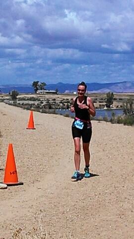 Comments: FASTEST RUN SPLIT IN MY AG!!!!!! I hit the port a pottie straight out of T2 because I wanted to be comfortable for the run. DH was there encouraging me <3 It felt so good to be running! I headed out across the dam and was almost floating. Then the hills. Big. Ugly. Hills. And a dude in a mankini. Going in to this race I was mentally prepared for a nice flat run course. When he told us the course had changed I wasn't too worried because I run hills at home. The worst of the hills were in the first mile but there were still some doozy's at about the 4.5 mile mark and up to the dam at the finish. When I saw the first mile marker I thought "is that all we've gone?!" About that time I felt something in my shoe and stopped to pull out what turned out to be a hair tie, which came in handy when the temp rose. I think I took a water at each aid station (1.5, 3, 4.5) and hit the porta potty at the half way spot. I was feeling "loose" and didn't want to end up like Salty's Boston "friend". At about the 5 mile mark I started feeling the IT band. I haven't felt that since O'side! What the... I knew that at O'side I could go about a mile before it got unbearable so I figured I could keep at it till the end. I did. I'd been passed twice on the run and I passed two people so I was feeling like the run was a neutral as far as placing goes. At the ending hill up to the dam I ran for a bit with a lady then she took off and left me one down :-( Turns out she was a teammate of Jim's and was from ABQ! What would you do differently?: Not let myself walk as much as I did ![]() Post race