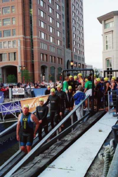 Comments: Only 3rd time to swim over a 1/4 mile but after 2 swims of 1mile distances in Maine, under more adverse wave and temp conditions...found the swim comfortable...as usual...I wish THAT portion lasted longer Cold water, waded out past majority of first wave...at start maintained a good course...paused on a few occasions to allow a few more navigationally challenged swimmers move out of my way to continue on course Good kick control and decent breathing technique. Needed more strokes and after realizing it, adjusted for last leg of swim...improved speed. Warmed up after less than a 1/3 of the course and the new Kaiman Goggles worked perfectly. Utilized more pull, less kick and it did save more for the bike/run but kept a good pace nonetheless...wetsuit worked exceptionally well. What would you do differently?: More strokes per minute....firmer torso control and begin a little less out than the pack...overall pleased with swim --- need to work on technique and drills over the off-season ![]() Transition 1
