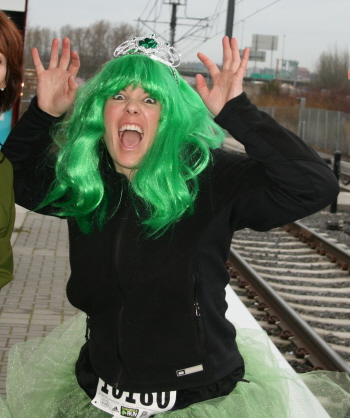 Ate a PB&J, poured my coffee, and got geared up. Running shoes? Check. Tutu? Check. Flashing nipples? Check. Race number/timing chip? Check. Okay then, I was all set to go.