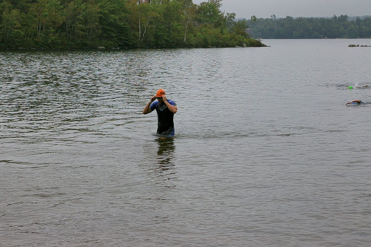 I waited until everyone was in the water and then started last. I worked my way up the field a little, but lost a good 20 or so seconds at the start. I will try to start near the middle of the pack next time, off to one side for some clear swimming. I'm just nervous that my breathing will get out-of-control if I start in the middle of the group.