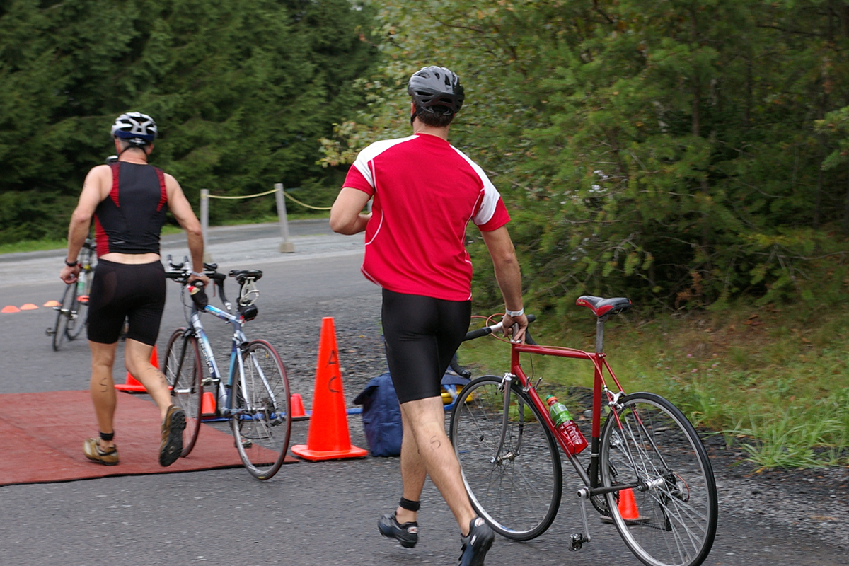 This was the worst transition! I don't have transition timings available, but I had some trouble with the helmet. Long story short, my helmet strap broke and I borrowed my wife's at the last minute. I soon discovered that one of the kids had borrowed the helmet as well! Let's just say trying to adjust the strap to fit with very short fingernails under time pressure is not the best way to finish an already poor swim! I'm sure it took an extra 30 seconds or so, but felt like an eternity. Lesson learned: always pre-check EVERY piece of equipment.