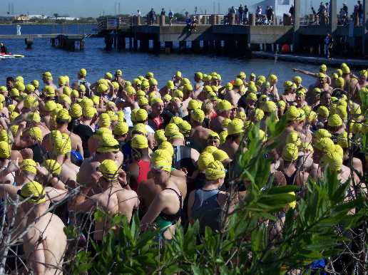 Warm down: Walked around - laughed - found my girlfriend - gave the big guy in the black jersey who was running it with his brother(#5??) an awkward hug as he spurred me on even though I was hurting. "Come on - push to the mailbox... walk, then push to the stop sign." Guy really helped me make it. What limited your ability to perform faster: Nerves at the beginning - got my heart rate way too high to start. Small Cut - right on the meaty part off my foot - bad news because I roll on the outside of my foot when running. Little mistakes - no aeropads - could have stayed aero longer If I had them, instead used my drops and did OK. Event comments: I didn't get to stick around for post race fun. had to boogey back to Houston, but overall enjoyed My First Triathlon. I think the event organizers had a scale problem - heard one comment that this was the 2nd year they did it and it mushroomed from 200 people last year to 1200 people this year. Also, emailed [email protected] for my official times, and just now got a message back: QUOTE Dear Athletes, Congratulations on a fine performance this past weekend at the Galveston International Triathlon Festival. The reason for the delay in posting the official results is that we have had to revert to our manual backup system as the airline transporting the computer system has misplaced it. We understand that the results are a crucial element and we are doing everything possible to ensure you receive accurate results. Thank you for your patience. END QUOTE So, hopefully I'll get my times soon. It was a good primer and one I'd like to go back to next year. What a great location! Last updated: 2004-11-24 12:00 AM