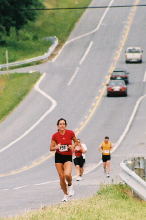 Comments: Seemed to go smoothly. I clipped out with no trouble, which was a relief because though I've practiced hundreds of times, I've only been riding without toe cages since May. I wanted a GU but didn't have it because I was worried about cramping. Wish I had eaten it anyway. I was a little preoccupied worrying about where my sister was. I was sure she'd catch up with me on the bike and was surprised that she never did. Turns out she had a slipped chain and lost 5 minutes in T1, but I didn't know this til I saw her on the run later. What would you do differently?: Eaten that GU and taken more of a drink. I definitely did not hydrate enough. ![]() Run