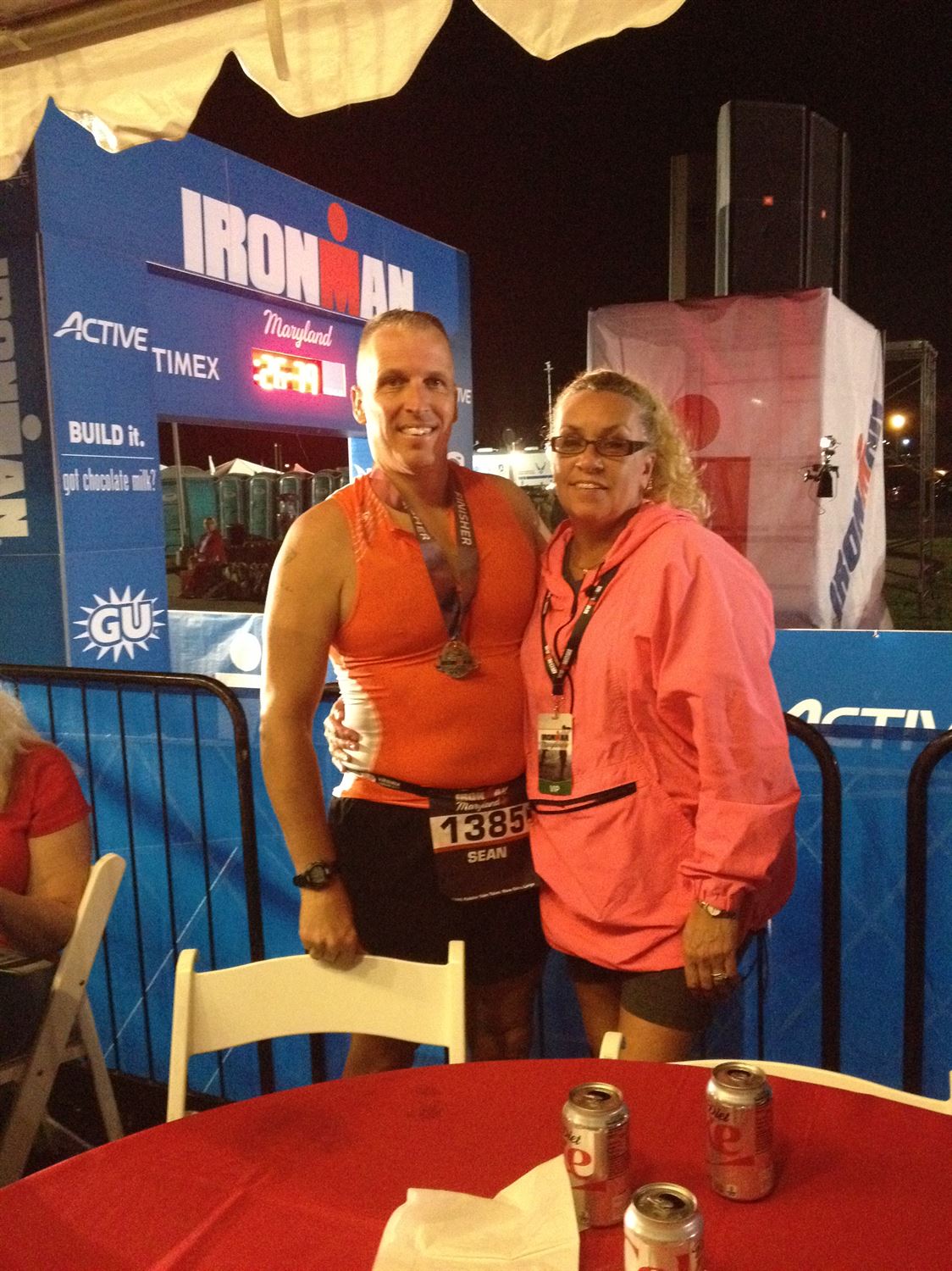 I ran the week prior with a head lamp (actually worn around my waist) picked up the light at the 18 mile special needs bag, glad I did, it gave me more confidence while running in the dark. I was clearing the aid station around 9;30pm or so (24 mi. point?/I think) at Great Marsh Park when an official advised I missed cut off or was about to miss cut up and to pick up my pace. I wasn't in the mood to argue and wasn't about to let 9 months of training be taken away from me. So I did what any IRANMAN would do, sprinted the remaining 2.2 miles. My pace went from 14:10 to 9:13 per mile. My survey to WTC explained my opinion on having a run cut off so close to the finish (2.2 miles) with such a long time to finish (mid-night). The printed cut off time was 10:50pm, but may have changed at the pre-race meeting?