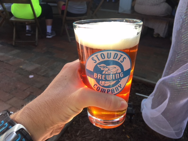 Had my usual breakfast of yogurt, apple, cinnamon, granola. Sipped some Nuun on the way to Stoudt's. Got to the race site around 9:10 am, start time is 10 am. We walked up to get our bibs, glass + beer ticket and use the facilities. Said hi to a few folks from the running club that I know. Took stuff back to car and stretched a little.