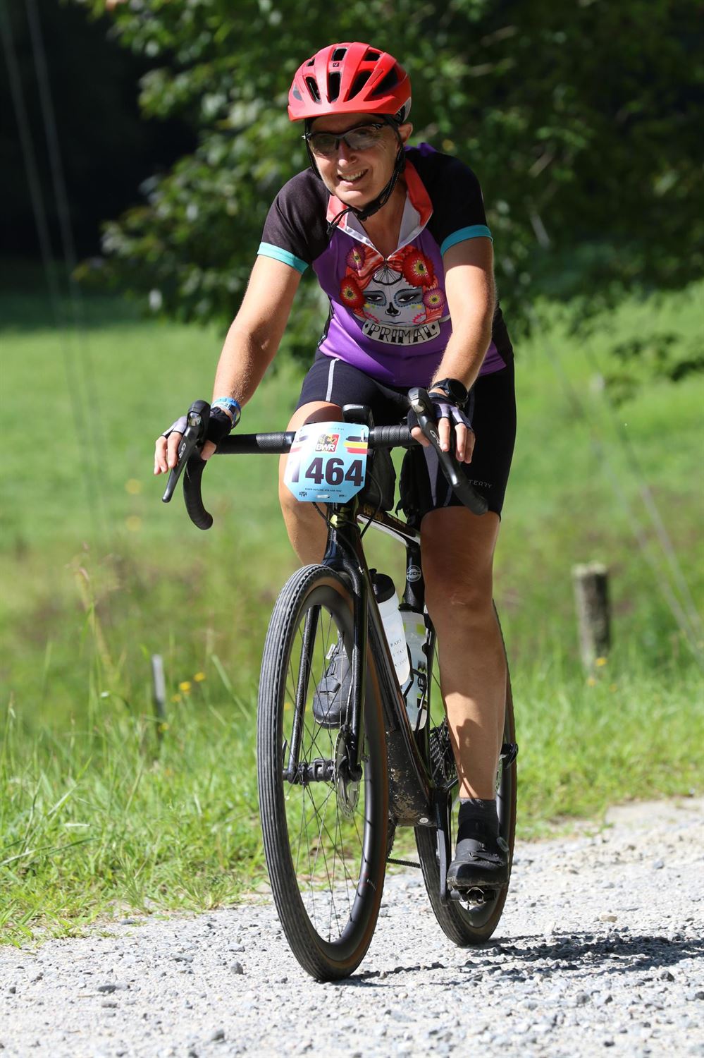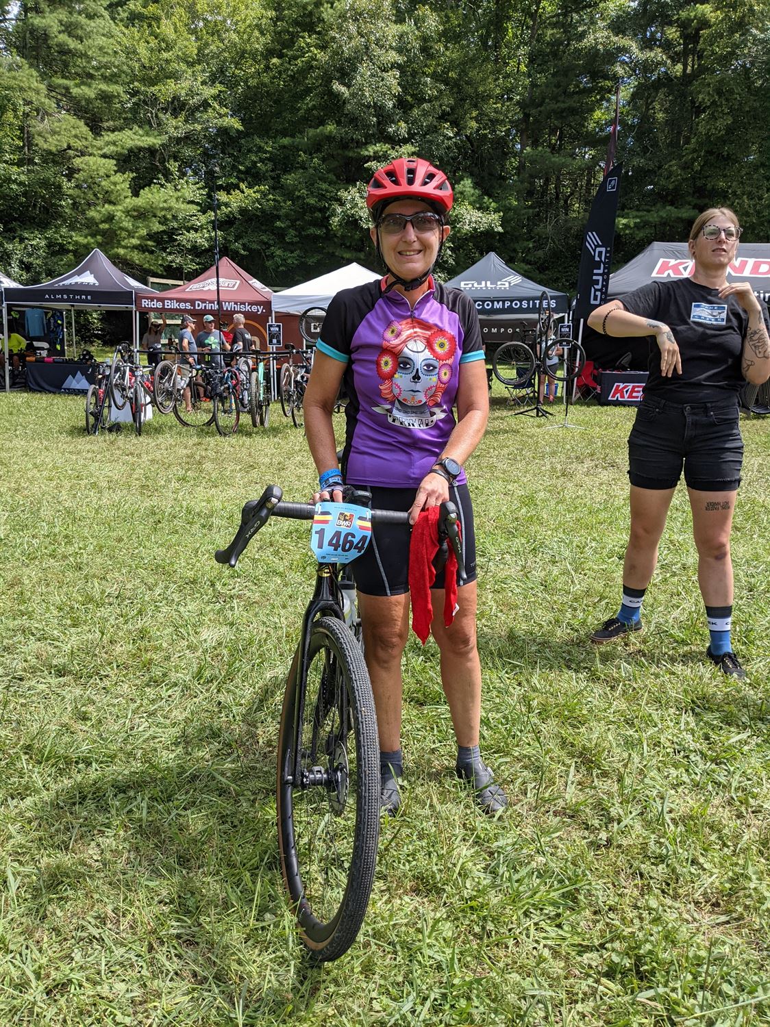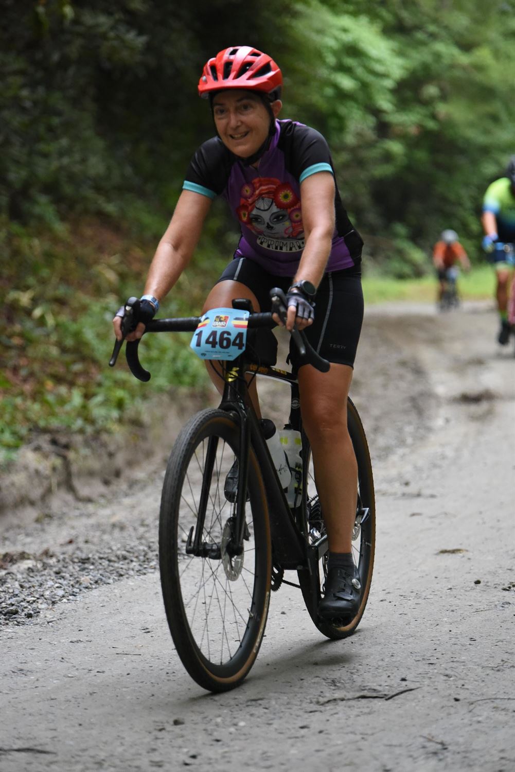 Comments: We rolled out on grass. With the recent rains, the ground was quite soft. At least two people lined up in front of me went down before the start line. I scotched up and clipped in right before the start line. We had a short gravel section about 4 miles into the ride followed by the 3-ish mile Lake Falls gravel climb at 7 miles. This was followed by a fast, fun Mt Olivet descent (where I achieved nearly 38 mph) all the way to Tuxedo. It was mostly flat with one little bump until just before the Green River Road gravel climb. The first feed zone was just before we got on the gravel part of Green River Road and started the climb. I stopped briefly to pee and then was on my way. The Green River part of the climb was a long and gentle climb of about 3.5%. The road was in good condition and the field was spread out. We then turned on to the Pinnacle Mountain gravel climb (still going up!) which got progressively more chunky. As I was riding on Pinnacle Mountain Road, I had some doubts that I was on the course. I mean, I knew that I was but there were no riders in front of me and there were not riders behind me. I thought to myself, "Am I doing that well or and I doing that badly?" There were two sections where there were so rutted that it was almost a culvert across the road and I wasn't sure about riding through. I got off and walked a few steps to get over one. Of course, this is where other riders appeared! The other one I kind of dabbed through. It turns out that if I had not unclipped, I could probably have made it but from far it looked like there was not line. Anyway, I got through both safely. By the end there was just rock gardens until finally -- finally! -- I could see Sky Valley Road. All told, the Green River/Pinnacle Mountain climb was over 7 miles. The second feed zone was most of the way up the climb. I stopped and had half a PB&J (cut in half uncrushable from the table there) and refilled my bottle (added Skratch). After finally making it to Sky Valley Road, we enjoyed a five mile gravel descent before turning onto DuPont/Staton Road. (Interesting factoid, it's DuPont Road in Henderson County because there was already a Staton Road there. It's Staton Road in Transylvania County because it's named after the person who advocated for the road to the DuPont plant that was located there and is now DuPont State Recreation Forest.). We faced two shorter climbs on the DuPont/Staton pavement -- one 1 mile climb at 5.5% and one two miles at 4.8% before turning onto Cascade Lake Road. But first -- I hit the pavement to gravel transition with too much speed and the bump was larger that I expected. I ejected my phone and food from my bento box (since replaced) and had to stop to retrieve them. The phone still worked but the screen was cracked (since replaced). Cascade Lake Road is a gem. I've ridden on it before and it's just so pleasant. I think that I've said before, Cascade Lake gets the bad Pinnacle Mountain taste of of my route. The gravel section is just under five miles and then we hit pavement for a little bit. I stopped at the third feed zone and got more water and another half of PB&J along with a pit stop before tackling the last gravel section -- where the race leaders (doing the Waffle route) passed me. And then there was Jeter Mountain. According to Training Peaks, I had my all time 5 minute power and all time 10 minute power on Jeter Mountain... until I cracked. I saw some other riders were walking and then I saw a place to unclip and that it was steep steep steep. My heart rate was super high (192 which is pretty much my max heart rate) and I cracked and unclipped. I've never had to walk a section during an event before (not counting the previously mentioned ruts because I think of that more as getting over an obstacle). I got back on the bike as soon as the grade was shallow enough I could actually get started again. I don't personally know a single person who cleared Jeter Mountain. I'm sure that a good number of riders did but no one that I know. The good thing about Jeter is that it was almost at the end! The finish line was about seven miles from the top of Jeter and that was mostly downhill. Ride time (including feed zones) 4:58:03 Moving time: 4:$2:27 Equipment Cervelo Aspero with GRX 810 48/31 crank and 11-speed 11-34 cassette Panaracer GravelKing SK 700x38 Reserve 32mm DT370 XDR wheel set Nutrition Plan 3 x 1.5 Skratch (2 bottles on bike plus a bag with more) 5 x servings shot bloks (2 with caffeine) (pack 6) 1 Clif bar or sub on course pb&j Plam to get a coke on course Nutrition Actual 3 x shot blok 3 x scratch 1 coke 1 uncrushable pb&j Weather Start: Broken clouds, 64°F, Feels like 65°F, Humidity 97%, Wind 1mph from W End: Clear sky, 78°F, Feels like 80°F, Humidity 80%, Wind 2mph from N ![]() Post race
