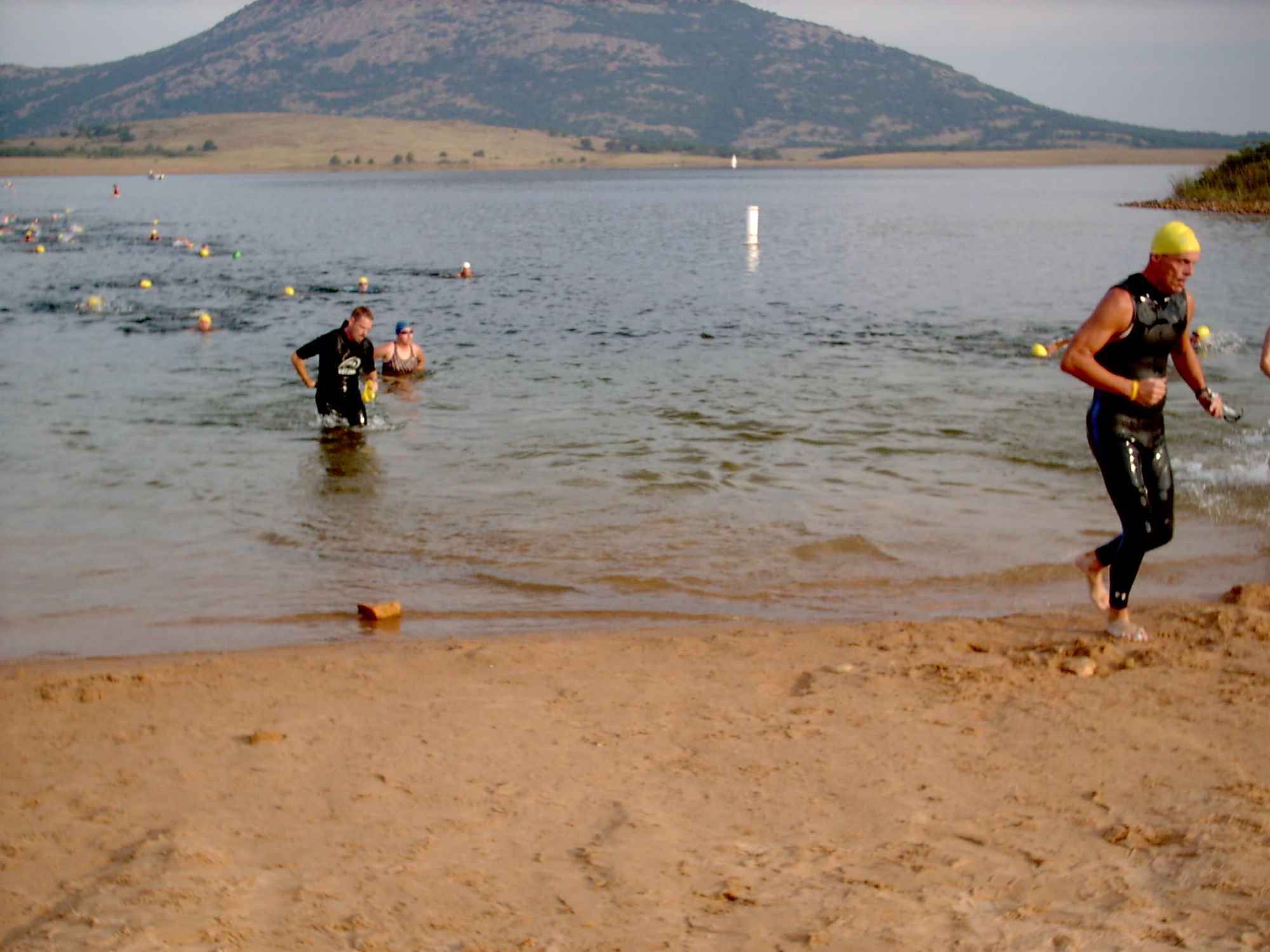 Got out of wet suit pretty quick and slipped itno the bike shorts with no problem. Socks and shoes took a little longer, overall fairly quick. No one was giving split times.