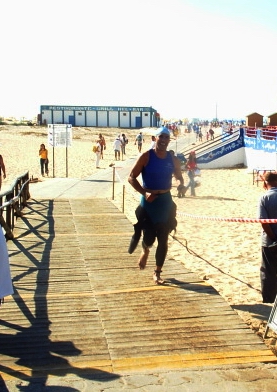 Had some difficulties when against the sea and with the sea, especially near the beach. Took of the wetsuit while running to the transition park.