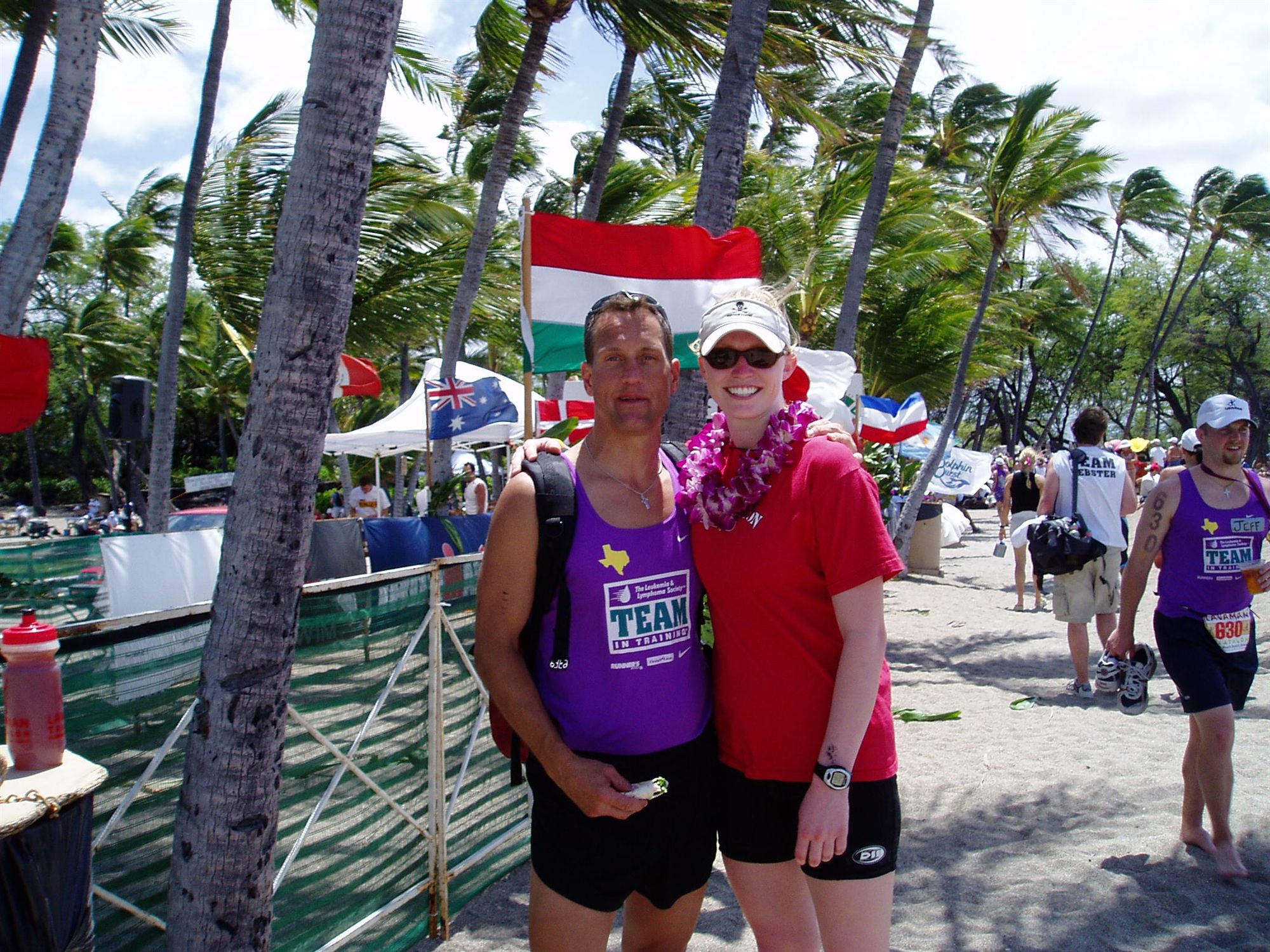 Warm down: water. apple. cookie. stretched. went to get massage, but there was an hour wait. Insertional area of hamstrings were bothering me. My L Satoris (maybe gracillas) was talking to me at end of bike and during run. Knees really stiff next morning and throughout the next day. no muscle sorness, just joints. What limited your ability to perform faster: heat, wind. Event comments: My race number was 55. I did this one through TNT for my friend (ex-boyfriend) Clint, who has leukemia. He was on my mind the night before the race. He's having his bone marrow transplant in 3 days. So I was kinda emotional, for many reasons. I was surprised I was able to separate my emotions and focus on race. First olympic distance. I'm pretty pleased w/ results. Initally I wanted to get under 3 hours, but settled with just finishing, since this one was for Clint. Matt did well 2hr 47 min. Katie 3 hr 18 min. And Dad finished under 4. Mom was our #1 supporter. She gave me a lei after the race. That could have been the best part. The family is talking about doing it again next year. Great Race. Amazing views, especially welcome when the race got too hard. Last updated: 2005-02-24 12:00 AM