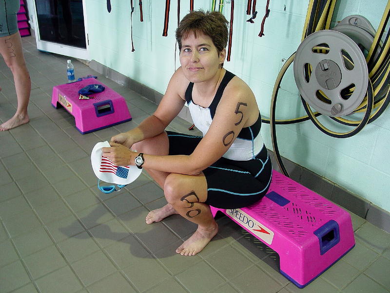 Comments: I swam very well. I prefer this start to the one in Athens (seeded) because I had to share my lane with only one person, so I always had a clear lane ahead. I was able to get into my stroke and keep it smooth. With fewer people thrashing in the pool, it was also less like swimming inside a washing machine! What would you do differently?: Since I can't do flip turns, nothing. ![]() Transition 1