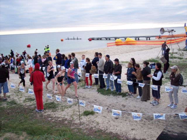 Warm down: Did a really quick stretch, not enough but I had to get to the start of the half ironman to watch my dad and heaps of my friends competing. What a fantastic race day and event. Its definately inspired me to do a half ironman one day. What limited your ability to perform faster: not having the right food. I also have a feeling I would be better at longer distances I'm not fast over short distances. Once I've got my running/feet and calves sorted out. I'm going to work on my running over winter now that tri season is over here! Pretty happy with it all though really Event comments: The race was fantastically organised as it was a pre race to the Half Ironman and a bit field of people 600 in half and 200 in my race. Really great weekend and I want to go next year hopefully either in the half or as a team in the half! Last updated: 2005-05-08 12:00 AM