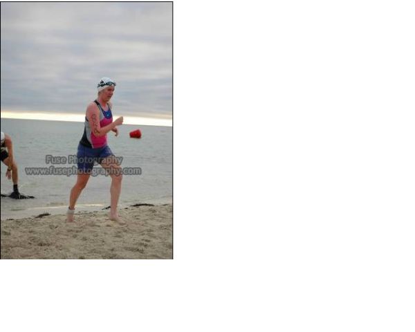 Comments: The water was freezing. I'm not used to really cold water so it took my breath away a bit at the start. It was a mass wade start with 200 people all at the same time. I got hit twice in the head at the 100m mark and was a bit put off but just kept swimming and got my stroke back and was doing ok until the first turn at the buoy. As there were so many people I was hemmed in and couldn't get any clear water and got stuck turning with a big group and as a result a guy hit my leg/knee really hard and his arm caught my leg and he pulled me under which really threw me. I struggled to get my stroke back and didn't have the greatest swim as a result. What would you do differently?: If I do one this late in the season I'll have to get a wetsuit it was too cold to do without a wetsuit. I'm not sure how I would avoid getting hit in the head or being dragged under. I have never had a start with that many people before I'll have toget a bit more experience in that. it was really hard with big strong guys swimming next to you not to get hit. ![]() Transition 1