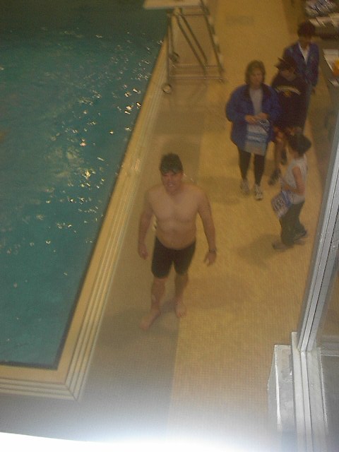 Course: The swim took place in a 25 yd lap pool at the University. They put 3 people in each lane and 1 person went off every 10 seconds. The swim was kinda like a circle, up the right side of the lane and back down the left side. much like driving a car on the raod.