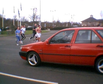 Attached some pictures taken by daughter no. 1. These are pretty low res, so you cant see much. This is me Zoe, Catriona and Dawn along with some nutter who was running without a shirt on (temperature was about 6c). This would be about the half way point. Please note the complete abscence of any snow.