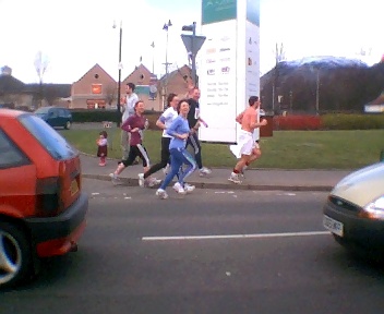Lost Zoe and Catriona at the start so ran with Dawn. I was sure we were ahead of them and equally sure that they would catch up with us. Was proved correct at Sauchie (probably about the 4 mile mark) when Z & C caught us. Headed along on mass for most of the way but lost Dawn at about 8 miles due to a stone in her shoe.