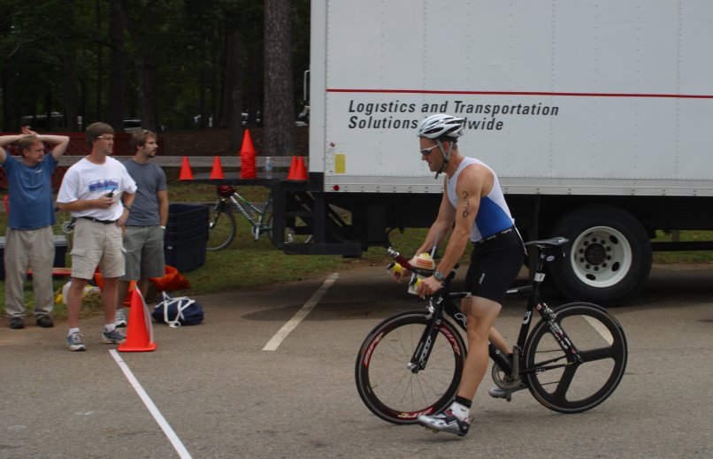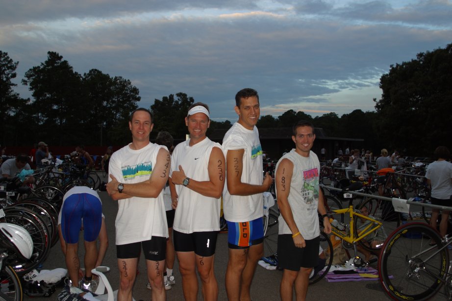 Dinner the evening before with Tom Plauche (Tplauche), Tony Hammett (Tribesman) and family/friends. It was great to meet other BT'rs. That morning, just liquids and got my transition area staked out and set up.
