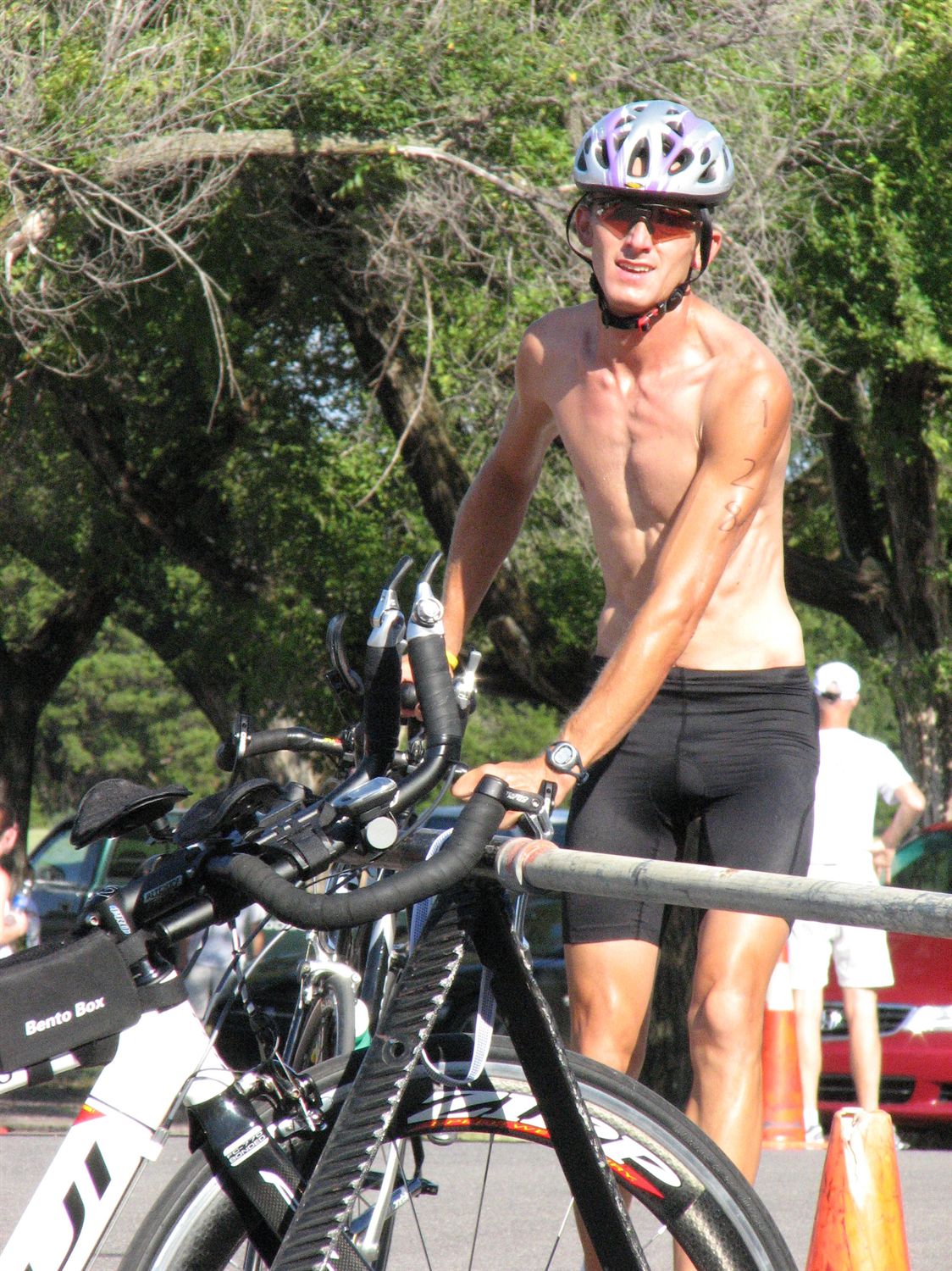 I usually don't really warmup for a triathlon. I did get in the water and swim a little just to get my arms moving. But it wasn't very much at all.