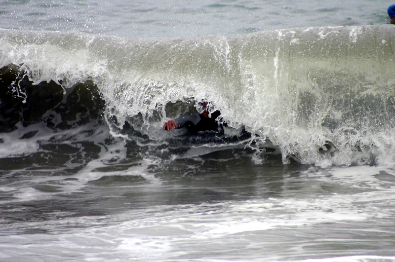We had 6-7 foot waves. It was very hard to get past the break, I must have spent at least 5 minutes trying. Also, there were large pieces of wooden branches and other things under the water. It was pretty miserable out there.