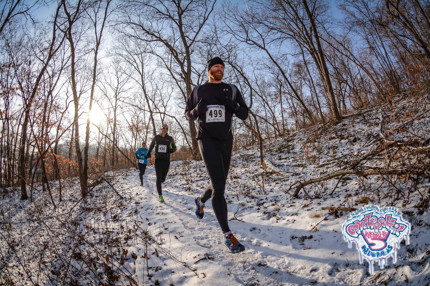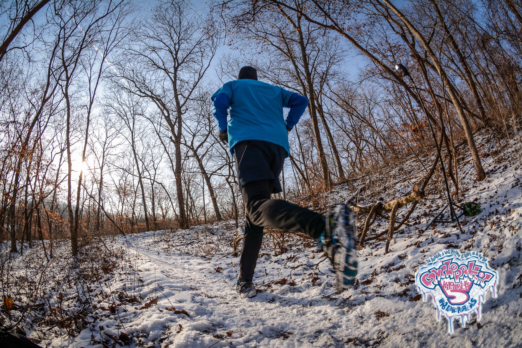 Oh yeah, did I mention this was my very first trail run? That's right, had never run trails before and here I am at a snow packed and hilly of a mother. I'm sort of a go for it kind of guy so no real surprises here, it's not like it's a 50K or anything...