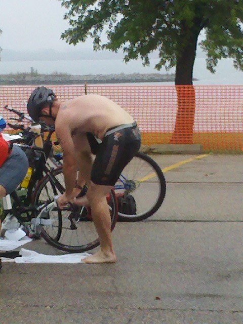 Woke up at 5. Had 2 Pop Tarts and 1/2 banana and water. Checked and rechecked supplies and packed the pickup. checked my race plan: swim-go out easy, evaluate new ows surroundings, modify 1/2 way through, bike-go out hard, ease off between miles 5-12 then let it rip, run-8 min pace for miles 1 and 2, evaluate how i feel, modify as needed