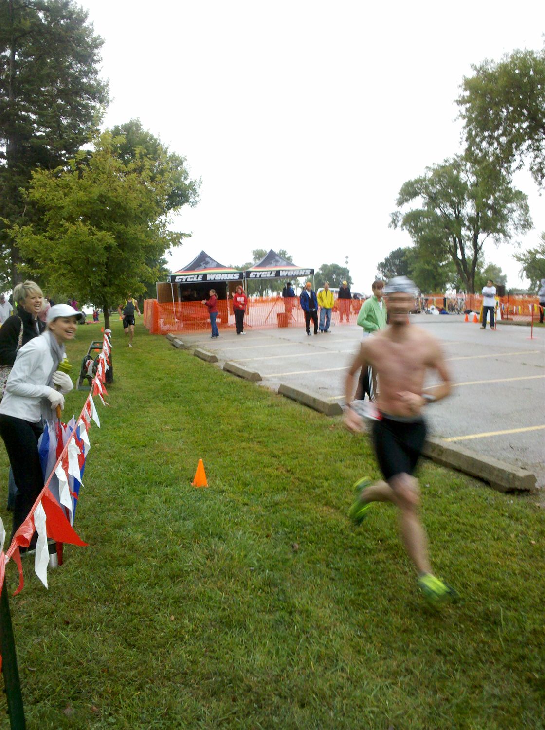 Warm down: bananas, bagels, oranges Event comments: $75 entry fee was steep especially since you only got a short sleeve cotton shirt and a tiny package of body glide. good race overall. weather.com said 10% chance of rain the entire morning with 60% chance starting at noon. well that was completely backwards. I misted and rained the entire morning and stopped at 1pm. oh well, everyone had to race in it. Last updated: 2011-09-20 12:00 AM