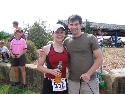 Comments: I stopped twice in the first mile of the run, which pissed me off. It doesn't help when a lot of other people are walking... kind of makes you think it's okay or normal, but I'd of rather kept on going. Also stopped twice at the water stations, but I planned on doing that. I knew I would be slower on the run, so I wasn't suprised at my time. I actually felt pretty good about it. I saw my family on the home stretch and knew I had to finish strong. Towards the finish line I started getting misty eyed and my nose was running like a faucet. I was pretty emotional about finishing with everyone clapping and cheering. But then I saw the event photographer and knew I couldn't be crying in my photo! So I smiled real big and that was the end of that. I finished super strong, which always means I had more in the tank. My Dad was right there at the finish line, which was cool. What would you do differently?: Not stop and go stronger. There is a lot of room for improvement. ![]() Post race