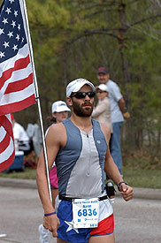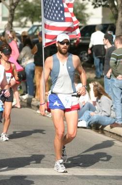 Comments: Being in the back corral I knew it would take me a while to get to the front. I knew it was pointless to try and jog to the line with everyone else. With 17,000 runners it wasn't going to make a difference. After 5 or 6 minutes of walking I finally hit the timing mat and was off and jogging. I bobbed and weaved my way through the crowds but I didn't fight too much. I wasn't trying to really run this marathon so the crowds were a good way to keep myself in check early on. Got to the first bridge and the half and full marathoners merged together. What a mess. I like big marathons but the mass starts really get on my nerves sometimes. I found myself hopping back and forth over the median in order to find room to run. I would pick a mark to run behind for a minute and when some space opened up I would sprint through until I hit the next wall of people and then slow down to pace off of them. The half and full seperated again at mile 2 before coming back together again at mile 3. That was pretty much how it went for the next several miles. My pace was on target for my projected 5 hour finish, but I just wanted to find some nice open space to run in for a while. Just before mile 7 we hit the section with the majority of the fans (except for the finish of course). I could hear people in the crowd cheering for a group of marines ahead of me. Hmmmm. My friend Julia is a marine and running her first marathon today with a bunch of her marine buddies. I pick up the pace a bit and low and behold it's them! One of them was even running his first marathon in boots and fatigues! As we talked for a bit a random woman came up beside me and handed me one of those purple braclets everyone seems to have for a cause these days. This one said "Freedom is not free"! Possibly the coolest thing anyone has ever done for me at a race! I put it on, thanked her and kept pacing my friends. They were looking for a 4 hour finish so I was a little surprised that I had caught up with them. Apparently I was moving a little faster than I had planned, but I felt great so I saw no reason to slow. After a mile with them I decided to sprint on out ahead and do some speed intervals to break up the monotony. Cranked out mile 8 in nearly 7 minutes flat. Mile 9 was where the half runners split off and turned back around. Finally! I had room to run! I could already start to feel the soreness in my ankle so I decided that I would keep up the intervals until the half-way point and then slow to an easier pace. Made it past Rice University and hit the half marker at a pace for a 3:30 finish! I was destroying my 5 hour goal by accident but I saw no reason to slow down that much. I started to think about trying to break my marathon PR (3:45) but I didn't want to beat myself up that much today. The Mardi Gras and Austin marathons are just around the corner afterall. I ran over the 59 access road and decided to let off the gas after that. At mile 16 I caught up to a guy running in a tri top and shorts. Looked at his arm and he had a tattoo of the IMCDA logo! Had to talk to this guy. His name was Demitry and he also had an IMLP tatto on his left arm and a swimmer/biker/runner on his lower back. He's been doing Ironmans for the last 5 years and had been running ultras for the last 2. Turns out he was at Sunmart running the 50-miler when I was there doing my first 50K. He's also going to be organizing the Texas Independence Day 5K in Austin. Really cool talking with this guy who loves endurance racing the same way I do. We talked for about 2 miles before I decided to take my first walk break at mile 18. At mile 20 we hit Memorial Park and mile 21 was the truck handing out free Michelob Ultra. Personally I can't stand Michelob Ultra but at this point in the race I'd make an exception. My ankle was getting worse so it was a perfectly good excuse to walk for a minute. Went past mile 23 and Buffalo Bayou Park when I saw a guy running the opposite direction in an IM top. It was Dave Scott! I checked the race results and he wasn't listed, but I met him at a tri in Irving just a few months ago and I'm sure it was him. Mile 24 brought us back to the course the half runners had already been over and the crowds were back in full force. Sadly, I was drained. I had already hit the wall and just didn't care enough to push through it. Had I started the day chasing a PR I might have pushed harder, but today I was just happy to run/walk the rest of the way and get to Celeste's BT post-race party afterwards. The angle of the roads was really doing a number on my ankle by this point so I made sure to run in the middle of the road whenever it was possible. Headed into downtown and was just a mile from the finish now. As I came around the next to last corner two guys thanked me for carrying the flag and said that they were running with me the rest of the way. Crap. All I wanted to do was walk to the last corner and then jog in the rest of the way. Now I have to run to make these guys happy! Fine. One last half mile won't kill me. We jogged to the corner and as we made the turn we could see the blue finishing banner a good ways down the street. Picked up our turnover and really pushed the pace those last few blocks. The crowds were roaring as we came across the finish and I was ready to get in line for a massage. Sub-4:00 finish on a day when I was planning on taking 5. On top of that, Houston made it 2.5 marathons in 9 days. I'm pretty pround of myself for that one. Next year I hope I can string 4 or 5 marathons together on consecutive weekends. What would you do differently?: Run slower. I pushed myself in the beginning to hurry and get away from the big crowds of runners, but I paid for it at the end of the day. ![]() Post race