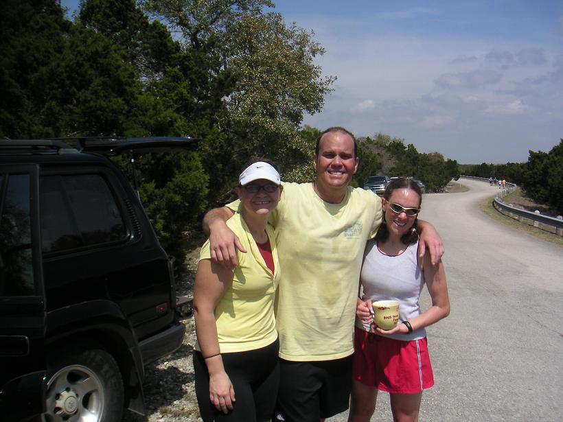 Comments: This course was on the Devils Backbone & Purgatory, and a road called 306 which was a combo of both! I had seen the section on Devils backbone and 306 before, but purgatory was a mystery to me. I am really glad I had ridden parts of it before, because I didn't freak out when the hills that didn't look like they should kick my ass kicked my ass. I turned on to the Devils Backbone, I was out there on my own. The hill that had gotten a "fu(k" from me in Dec pulled in to view. I knew I had to build up speed on the downhill before it. At the apex of the f hill, they had the photographers. Now I understand why this is a cool place to have photographers looking at triman50 & max's avatars however in my case it was more of a still life. So at this point I was about 7 miles in and feeling good. I only had a couple more miles till I turned on purgatory. I had passed the f'in hill, and I didn't get a flat on it which is what I was afraid of. Instead I got the flat a mile later. I walked the bike about 200 yards till I could change the flat in a safe place. I had all the stuff in my camelbak, so I felt ok...just frustrated that it happened. I also flashed back to the thread on "do you carry tools on sprint & olys?" and I was glad that I did! I checked inside the tire, and couldn't find anything in there, so just pulled out the new tube and got it and the tire back on the rim. I pulled out my CO2 cartridge & nozzle and DISASTER strug. An o-ring in the nozzle popped out of place. My hand got pinched & frozen, but more importantly my tube did not inflate. Luckily I had a second cartridge sitting there. So I pushed the o-ring back in place and this time it worked. meanwhile about 8 people passed me...the joy of being a BOPer. I jumped back on my bike but my mental game was shot. At this point I just kept telling myself "you're out for a Sunday ride...on Saturday, but you're out for a sunday ride." I turned on to Purgatory and the wind hit me in the face. I was pretty much just slogging away at it and watching the distance tick off on my bike computer. I did pass 2 people who had stopped at the bottle trade off...so there were 2 people behind me. Then right before we turned onto 306 I passed a TNT chick. Having the TNT chick as a rabbit helped me kick it up a notch. Then for the fun part. There was a SCREAMING downhill mile. I got up to 38 that I saw...I would have tucked in more if I had experienced that hill before...so next year I should get up to about 45 :) The rest of the ride was just trying to bring her home. I passed 3 more people, one of whom was fixing a flat on the side of the road. I felt his pain!! ![]() Transition 2