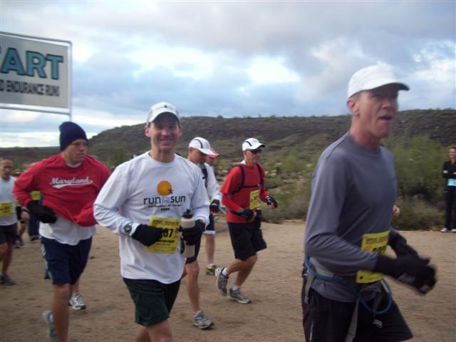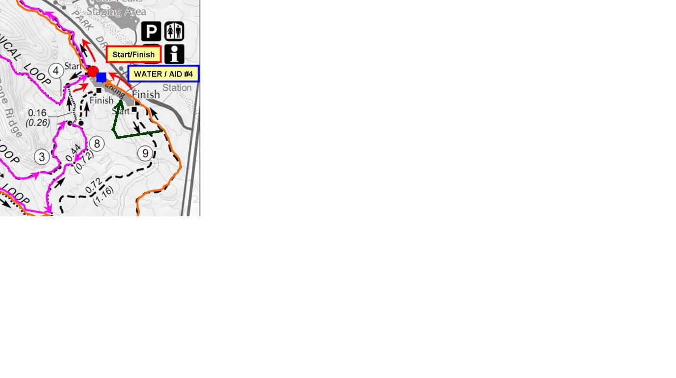 Comments: I want to start off by saying that this was a stretch run for me. The longest I had ever run in a race prior to this was Pat's Run (4.2mi). I had never done a 1/2M before or even a trail run. But the thought of doing a 25km just seemed so enticing. Mileage seems so much further when you talk in km instead of miles. Prior to the race I had done a handful of runs in S. Mtn at or over race distance so I thought I was ready. I had programmed my Garmin for a 9:45/mi pace but the trill of the start of the race got me caught up in the excitement and I started out with a 8:45/mi pace. That would normally be an indication that I need to slow down and I normally would have but I felt so good. By the first aid station things were starting to thin out. I had gotten myself into a group of 4 or maybe 5. There was an older man in in front of me and a woman in front of her and there was at least one guy behind me. Since I was carrying two gels and my Gatorade, I had no plans on stopping at any of the aid stations which should've been my clue to be on the side of the trail opposite the aid station when aid station two came up but, of course, I wasn't and the two people in front and to the right of me immediately cut to the left ot get something. A little fancy footwork is all that kept me from plowing right in to them. With those two stopping at the aid station, it was down to me in the lead and two guys behind me. Within about 1/2mi after the aid station, I could feel and every so often see that the second guy was slowing down and eventually we lost him altogether. The remaining two of us stayed together for the rest of the first loop which was about 5mi. We got to talking which was kind of cool because I had never been in a race where I could actually talk to someone. Usually, it is a quick "good job" or "lookin' great" as you pass one another. He mentioned that he had a friend who was going to take the first loop easy and then speed up on the second loop. I was surprised I told him because if I ever tried that by the time I reached the second loop I would be too tired to pick up my pace regardless of how fast I had run the first loop. I asked him if his friend was in front of or behind us and he said that he was behind us. It got me to thinking that I started out the race in the middle of the pack and then passed quite a few people as we all started filtering out. I couldn't remember anyone passing me so I had a pretty good idea that I was in the first half of the race which was one of my "I did awesome if I did this" goals. We got to talking more and it turns out that his name was Dan or Daniel. He had raced in two Ironmen, ran P.F. Chang's last week and is going to run Lost Dutchman. I thought "this guy is crazy!" and then I thought "I'm keeping up with a guy that did all that! Ya-Hoo!!" We passed by the thrid aid station with some cheering from the volunteers. It wasn't until probably the last mile to mile and a half of the first loop that this guy came flying past us with a 10mile bib on. He was the first and only 10 miler to pass us and that guy was hauling. From beginning to end, I don't think I saw him for more than 30sec. I could start to see the parking lot now when we came up on top of hills. It was a reassuring sight. It was around this time that I think I saw Paulette with her bandana in her hair finishing the first loop and I thought "she is to the right of us so the course must take a hard right before we get to the parking lot. Nope! All of a sudden blocking right as we were about to come out to the parking lot was a gate. I looked to the right down the parking lot and there was someone coming out of the end of the first loop. Somehow, I had gotten off the trail and on to a service road at the very end. (See picture at end of report) I never hand any idea that we were off track until we almost ran into that gate. I was dumbfounded because I had even run that route before when it wasn't even marked and not had any trouble. I wanted to run back and run the right course but I had no idea how far back I would need to go and I wasn't even sure if I'd find it then. I felt like I was going to be a fraud. I know that sounds a bit harsh but I wanted to run the same course that everyone else ran. I didn't want a little * by my name saying he ran "most" of the course. All this was going through my mind when Daniel called out from the other side of the gate saying "My watch says 10mi." Mine did too. There was also a spectator standing right there motioning which direction to go to continue the race. I relucantly climbed thought the fence and continued the race with a bad taste in my mouth and kicking myself that I had gotten lost on what was a fairly well marked course. As I started out for the 5mi loop, Daniel took off. I eventually realized that he was following the same plan as his friend by taking the second loop faster than the first. I think by 3/4 of a mile into the second loop I never saw Daniel again. I was still kicking myself about getting lost when I came upon a truck that was on the trail and a fence in front of it. On the other side of the fence was the trail that led through the culvert. My spidey senses started telling me something was wrong. I yelled up to the aid station and said that I was on the second loop of the 25k and if this was the right course. They said "Yes!" and motioned me through the culvert. I hadn't gotten through the culvert very far when two guys came flying past me that is when I realized that I should go over the culvert before I go through the culvert on the second loop. I was cutting off about 3+ miles of the race and I was clearly out of my league. I doubled back and left the trail to climb up on top of the culvert and pick the trail back up. The aid station volunteers yelled to me that I was off the trail and I said that I knew but I was just trying to get back where I should be. (See other picture at end of report for where I think I got lost) At