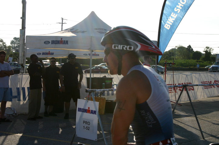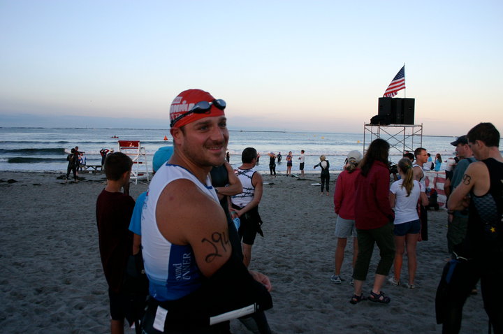 Got there just before 5:00. Setup transition real quick. Took a piss. Synched up with Ken/Tyra briefly and gave Tyra my clothes so I didn't have to use the van. Then 10 minutes later when I was walking to the water I realized my timing chip was locked in my car. I proceeded to run through the parking lot looking for Tyra and happen to get lucky, found her and got my timing chip. HR was probably at 180 at that point so it was a good warm-up.