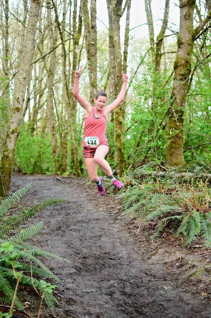 Comments: I had never run on the trails here at Dash Point. I took a look at the course and the profile and saw the female course record was 52:xx. It seemed like a stretch but my secret goal was to break the record. Trail runs are always hard to gauge in terms of time but it seemed like a fun goal to chase. A teammate was also racing this. She is much faster than me (a 1:16ish HM runner) So my goal was to just keep the time between her finish and mine as narrow as possible. The half marathoners took off about 15 minutes before us. Additionally, there were about 200 of us 10K rail runners. Which is a lot for single track! I knew I had to line up near the front if I didn't want to get caught behind. We took off into the trail and were immediately heading up hill. About a half mile in there were a few stairs, a bridge and then some more stairs. Once you hit the top you ran along a ridge and then headed down another set of stairs. We had a water crossing and then some more stairs up. I was careful to be relatively conservative here so as to not zap my legs before the single track climbs AND so that I didn't slip on the wet stairs. The climb was successful and we slipped into the single track, filing into a single file line. The course wound through the woods with little room to pass. I felt pretty good about my positioning. I saw a couple runners ahead and very slowly caught up to them. To get around them I really had to get up into the bushes a little as it was mostly single track. I was thinking, I sure hope there isn't any poison oak/ivy in there! There were some pretty challenging ascents and my legs were burning a little. I tried to moderate a little as there was a lot more race left. Around the halfway point I started catching up with half marathoners. For the most part, a simple "on your left" was all it took and people moved over, sometimes completely into the bushes giving me a straight shot past them. But there were some challenging passes. One woman had headphones on and could not hear me. Finally I just had to fully charge into the bushes to get around her after many, many failed attempts at yelling. My rhythm was a little broken with the constant acceleration and deceleration of passing the half marathoners but that kind of sums up trail running on single track. I was closing in on two 10K runners I had in my sights for a while. I took a nice wide berm to get around one but was unable to get by the second. He was a young kid, very young. Maybe 10 years old? Seeing him gleefully run through the woods brought a smile to my face. I thought to myself how I wished I had started so young. I called to him, "On your left!" and he sped up. Alright, so the kid wants to race... I kept accelerating up to him, then would move over to his left into the bushes and he would block me! My smile of endearment quickly left my face and I decided this competitive little kid needs to be taken down!!! I tried, and failed to pass him for about 10 minutes. I am not kidding. The little shit. Finally I said, "Eff it" and ran thick into the bushes, accelerated HARD and got around him. It was frustrating. I get being competitive but if someone has it in them to pass you, you have got to move. Whether you like it or not. I had wasted a ton of energy trying to get around the little shit and was exhausted. This was the point where a trail 10K and a road 10K feel very different. For the trail, you start to get a little close to that hour threshold and you can really feel it. I tried my best to sustain my pace. I just kept pushing. I saw some more people ahead and used them as motivation to keep accelerating and passing. There were plenty of half marahon runners to pass as well but luckily the trail had opened to a more double track type of format. The running was fairly smooth through this section but I could tell I was starting to struggle more and more and we weren't even to the stairs (which meant a half mile out..) Finally, finally I saw the stairs. My legs were super wobbly so I had to be a little cautious, especially on the descent. Once I got through all the stairs I gave it all I had and ran through to the finish. I hadn't been wearing a watch but looked up at the clock to see I had gotten in under the 52:xx to take down the previous course record! Of course there were a few women in front of me so I don't OWN the record, but I pat myself on the back regardless. This was one of those races where the results (time/place) don't exactly match up with the accomplishment. I gave Dash Point my all and had NOTHING in the tank at the end. I was very, very proud of this race. I ended up finishing about 2.5 minutes behind my much faster teammate proving that I can really start to close that "talent" gap on the trails. I look forward to working hard and narrowing it further. What would you do differently?: Train more! Always! ![]() Post race