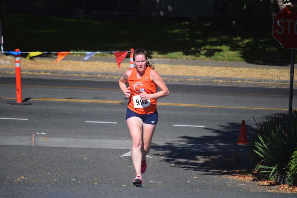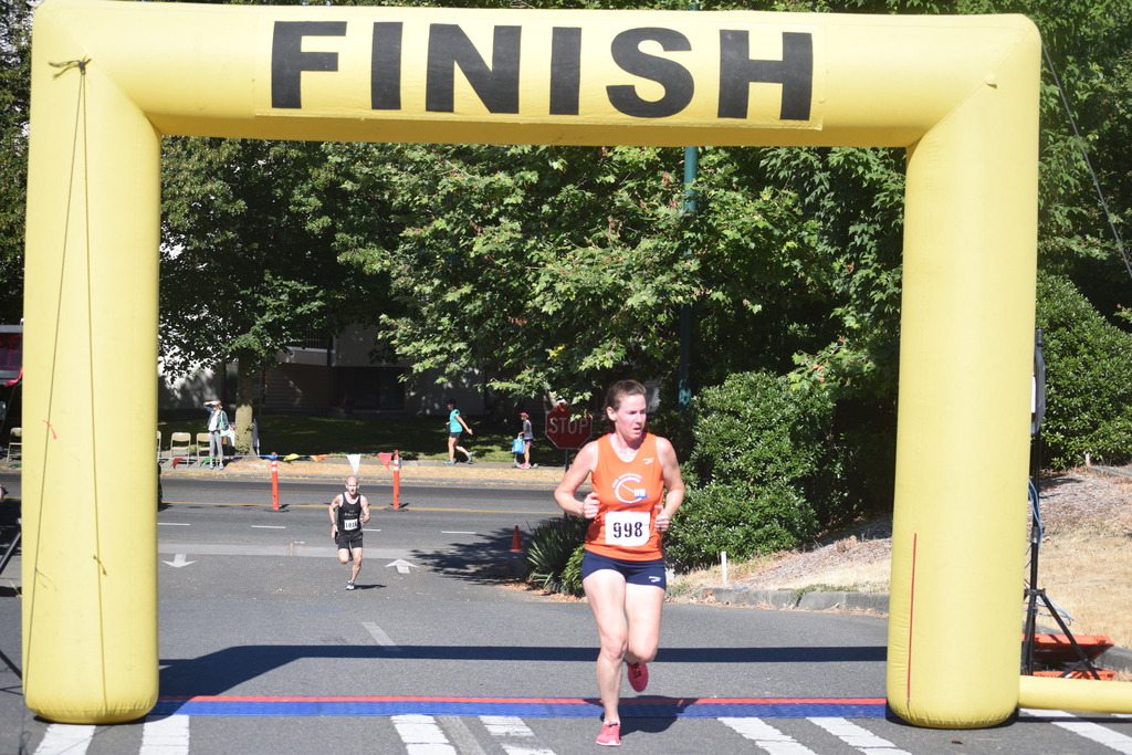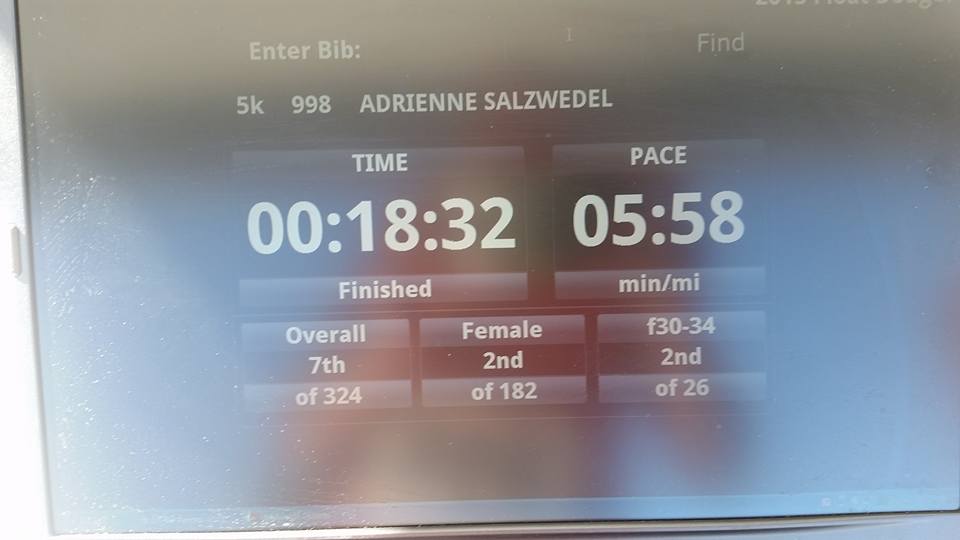 Comments: **This race has a big asterisk in front of it** The timing was all kinds of wonky. The RD gave me an 18:32 and my teammate a 17:31 which was close to what the clock read when we crossed. I asked him if it was completely accurate and he said yes. But the he said that the course was not certified. I checked out their map that had it at 3.12 meaning it was long. But then they did a weird adjustment which put me at 19:37 later in the week and then 19:31. Soooo, I don't know. He swore that first time was accurate. And in mile 1 I had a 5:56 split. So, who knows. Ironically it seems that both times I have "broken" (or did I?) 19, there was a timing snafu. NBD at this point since it was more a piece of training and a fitness check in (19:30-18:30 mean that I haven't lost the ability to move my legs) But I'm claiming that 18:32 since the RD swore. I think he even pinky swore :) Anyway, all that being said, here are the more important deets: I lined up a little back from K (one of my CNW teammates.) She's a 16:xx 5K runner and I knew upon her arrival I was racing for second. I mean, unless she tripped and fell or like, got hit by a rogue ice-cream truck or something. A young runner sang the National Anthem and it was really, really good! Once she finished they counted down and we were off! There was a super intense looking woman wearing an Oiselle kit that might pose a threat so I went ahead and started strong (but not overly fast.) We had to go about 100 yards then do a 180 at a cone, which is kind of a pain. Once we turned the cone it was a nice long straightaway. https://youtu.be/rRBwbU8Q9CIvideo of us going through turn There were 2 additional women in front of me once we got around the corner (other than K) I didn't panic but kept a close eye on them. I didn't want them to get too far out. I tried to keep my pacing nice and even. Not accelerating or decelerating on the hills, just keeping a nice solid effort. At about mile 1 I passed one of the women. A man next to me called out the pace at 5:56. I quickly reeled in the other woman who kind of faded suddenly. The 556 dude was running right next to me almost to mile 2 where there was an uphill before we descended a small hill to the turnaround. I passed him on the "up" then maintained the distance on the down and slowed for the turnaround (another180) where I was afraid he may catch me, but I think I put a little more distance between he and I back "up" the hill. The road flattened out for the most part again and I approached a young man. I passed him and upon being passed he accelerated and passed me. But he couldn't hold it and faded quickly. I thought about encouraging him to stick with me but I was starting to strain quite a bit. We were in the full sun and it was getting pretty warm out. It was about here I heard someone yell my name. I scanned the runners headed towards me and saw who it was. I struggled to make the connection and then it came to me, it was my bosses boss. lol it's funny when you see people out of the context you usually do. I waved and kept running. We had to pass the finish turn off (booooo) and then go around that damn cone again and then back, up a hill and into the parking lot of the high-school. I tried to maintain as much speed as possible around the 180 (wasn't overly successful) and pushed hard up the finishing hill and through the finish. What would you do differently?: It was a pretty solid race. For max performance I would taper, not run quite as long of a warmup. ![]() Post race