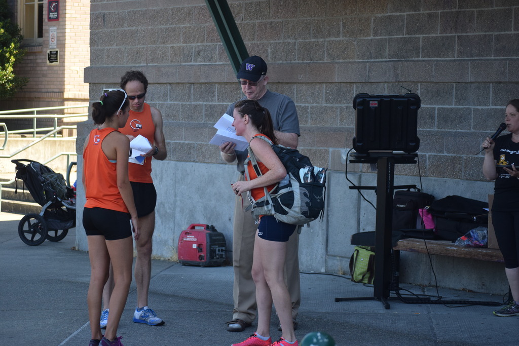 Was going car-free today since I was headed to a beer festival afterward. J dropped me off on her way to class I I climbed the 500', 2 mile hill to the start. I stopped and picked blackberries on the way :) This was just kind of a tuneup fitness check in and I wanted to get a little mileage in and not worry too much about being 100% fresh. I got to the track, did some strides, checked my bag in and then saw some teammates and chatted with them for a bit before the start.