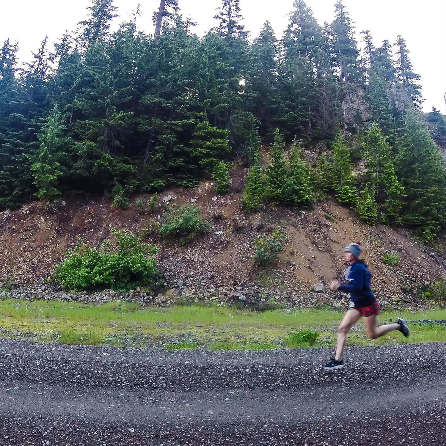 The shuttle bus arrived at the Hyak sno-park up in the mountains. Used the porta then picked up my packet. Then I went and ran some easy miles followed by some strides.