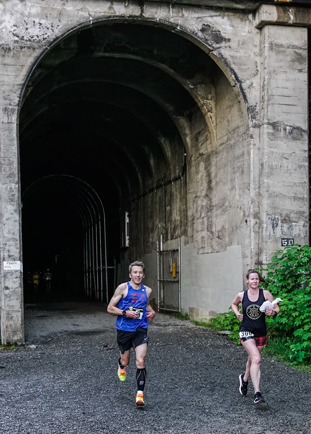 Comments: Originally I was targeting this race as one in a sequence of running goals. Then I shifted my goals a bit. I've realized that running is, and will remain, one of my number one passions, however, it is just one of many and I need to find a little bit more balance both as an athlete and as a person with different interests and goals. I think running is the most amazing foundation for all of the other things I like to do. BUT if I want to get maybe that last 10% out of myself in terms of running and really achieve my" potential", the other things would have to go. And right now, that's not what I want. I want to explore my potential as a well rounded athlete who can run long, run short, who continually develops my skills as a mountaineer and an alpinist and one who can jump into a game of soccer or touch football without fretting the consequences to my training. Most important, I'd like to be able to open a jar of pickles without an assist :) Related article: http://www.outsideonline.com/2087751/yes-professional-runners-are-w... Anyway, I wanted to have a little bit of context before I talk about the actual goal in the race and the plan. I had an idea that I could run under 3:10 if things went well in training. Well, training began and was going pretty well. I wasn't going to run a tune-up half but I ran a 15K that told me I was pretty much on track and could maybe get closer to 3:05 if I had another solid chunk of training before the race. Welllll, that didn't happen. It wasn't that I wasn't running, because I was, but I had a few trips (both work and vacay) and the running just had to be more in the general aerobic category than the very specific marathon training needed to continue to make the necessary gains. By the time I needed to taper I was even a little concerned that the 3:10 may not be possible. I did one more training run with 10 miles at M pace which I executed on. I had to make the judgement call that I had enough information that a 3:10 was a reasonable goal. Just a side note: The reason people blow up in marathons isn't because they didn't eat enough gels in the race. It's because their training was not enough for the pace they set out to run. Here's the thing, I could have set out at a sub 3 pace and in fact ran that pace for a good 18 miles. The problem is, you can only outrun your fitness for so long and when you reach the extent of that it hits HARD. You are not only unable to run that same pace but your times drop drastically and in some cases slow to a walk or a DNF. Now we would be talking about another 8.2 miles of absolute hell at a much slower pace, best case scenario. Conversely, if you start the race too conservatively you can only make up so much time at the end of the race. So, figuring out what that M pace should be is not easy and is why the distance alludes so many. Regardless, erring conservatively for a marathon really is a good idea, in most any case. You may not hit your absolute potential but you will get a heck of a lot closer than if you go out too fast. Now for my race plan. I wanted to run this race as fast as possible knowing that I wouldn't be taking time off after like I usually do and knowing that I would be climbing a mountain two weeks after. So, basically run it smart and as close to the edge as possible but with none of that mental or physical risk of going over. I decided to go right at that 3:10 pace (also seeing how I felt and going slower if needed) and make any adjustment at the half (if I felt I could speed up a bit.) We lined up very casually and just like that we were off. It was a very low-key vibe which I really appreciated. There is a short loop before jumping onto the trail and heading for the tunnel. As we approached the entrance to the tunnel I flicked on my headlamp and settled into a nice, comfortable pace. The tunnel is about 2.5 miles long and completely dark. It's a really wonderful way to start the race. It was a little spooky, damp and chilly. Because this race was pretty remote I wore my watch. I wasn't using pace or anything, just the gun time so that I could approximate off of the mile markers. I just did the math in my head from one mile to the next IE 7:15, 14:30 etc. I didn't add or subtract actual time, just adding 7:15s. About halfway through the tunnel you can see a tiny dot of light at the end of the tunnel. Slooooowwwwly the dot gets bigger and bigger and then, before you know it, you are approaching the exit. About 200 meters before the exit I switched my headlamp off and took it off my head. I had been running with a bag in my hand with my bib number on it. I placed the headlamp in the bag and tied a knot whilst running then handed it to a volunteer at the exit. The first aid station was here where I took a full stop to actually drink a cup of water since where were only stations every 2.5-3 miles and I was living off the course. I finished the cup, thanked the volunteers and made my way down the road. A guy I had been pretty even with through the tunnel pulled up next to me and struck up conversation. We talked about our goals to be conservative for the first half and about other races we were planning and had done. We needed to make our way through a crowd of people who seemed to have started to quickly so he and I were separated. The next few miles ticked off quickly. I seemed to be pretty even with my pacing and felt good. I got water again at the station around 6 miles and then again near 11 where I also had a gel. I rolled into the half right at 1:35 pretty much on the money. I was feeling pretty good but not great. The slight downhill of the course really takes a tole on the legs. I had run this marathon a few years ago and knew this was the case but I was re-reminded with dull achiness in my quads already. I just tried to keep focused on one mile at a time, deciding to slightly increase my pace through mile 23 if possible. I hit 14, 15 then 16. My foot hurt for a moment then went away. My h