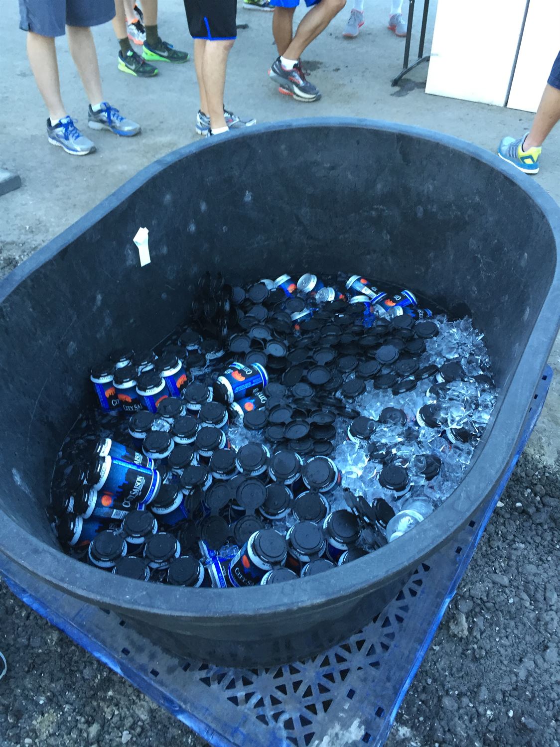 Comments: My race plan for this year was to back off slightly on the running pace and aim for 5:30 while slightly improving the drinking pace. Last year was roughly 5:00 running and 1:30 drinking. A compounding factor was a recently crowned tooth that is cold sensitive. Execution: once we were corralled up for the start and given our beers I spent the time until start rubbing the can on my belly trying to cool myself off and warm up the beer, this might have helped a teeny bit. Regardless, 5s into the race I got a drowning sensation from waterboarding myself with the beer, similar to my first triathlon swim. First run leg went well, 2nd beer hurt. 2nd run leg I was busy trying to belch when I v'urped instead, managed to choke everything back down but dang this was off to a bad start, there was a foam fest going on in my stomach. 3rd leg was similar minus the v'urping, started to notice that I was going back and forth on each leg with a couple guys who were outdrinking me but I was outrunning them. Last beer was miserable, Pete passed me and I sucked it down and took off to catch up on the run. What would you do differently?: obviously need to work on my drinking, the run was executed per plan. ![]() Post race